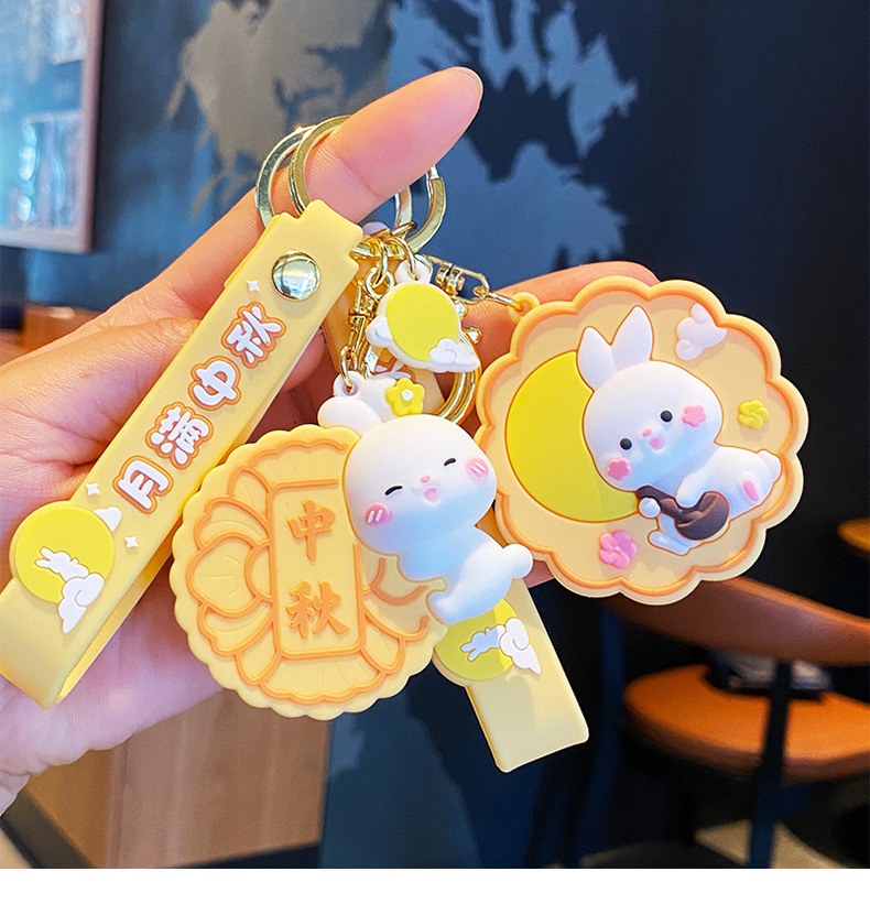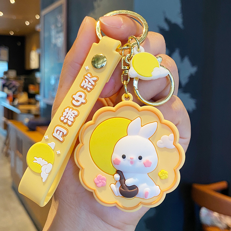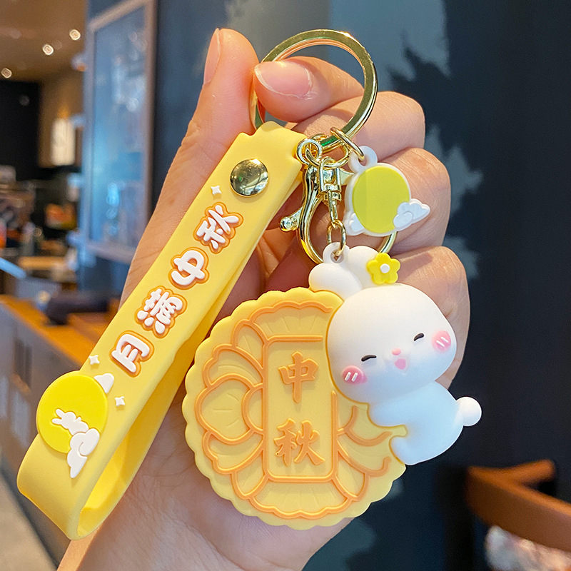 중순 가을 축제 문 케이크 토끼 열쇠 고리 여성 귀여운 토끼 인형 학교 가방 펜던트 자동차 열쇠 고리 커플 선물스토어 가기