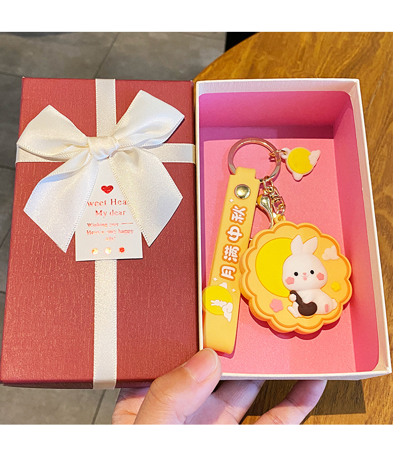 중순 가을 축제 문 케이크 토끼 열쇠 고리 여성 귀여운 토끼 인형 학교 가방 펜던트 자동차 열쇠 고리 커플 선물