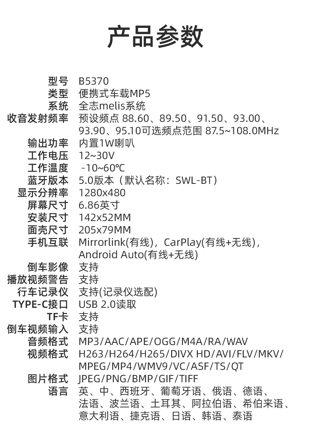 접이식 6.86inch 휴대용 블루투스 자동차 mp5 플레이어 HD 스크린 무선 Carplay 자동차 PND