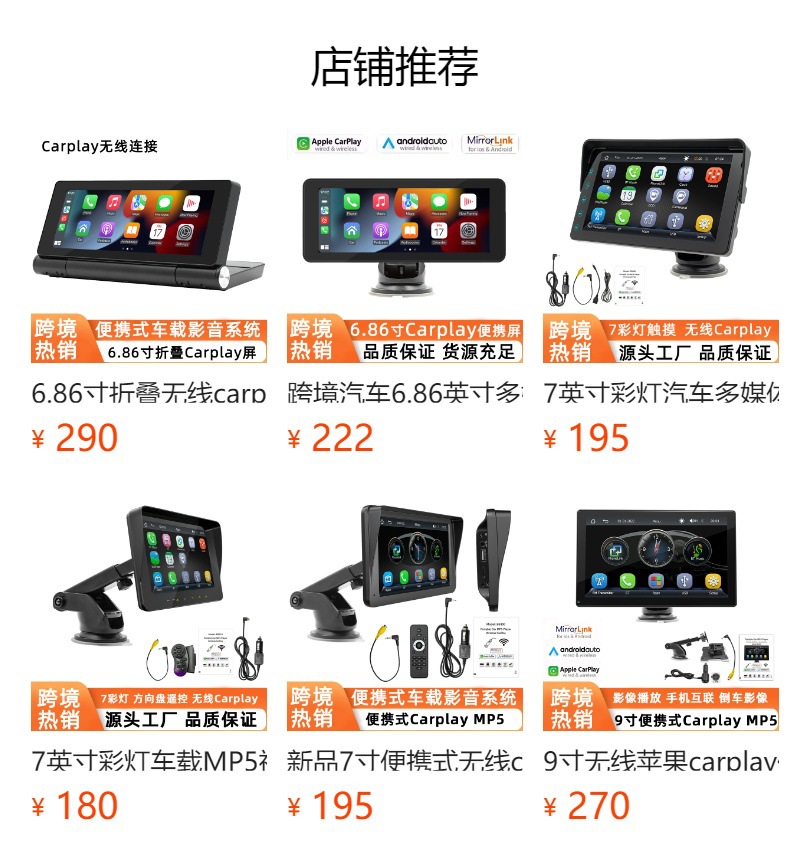 접이식 6.86inch 휴대용 블루투스 자동차 mp5 플레이어 HD 스크린 무선 Carplay 자동차 PND스토어 가기