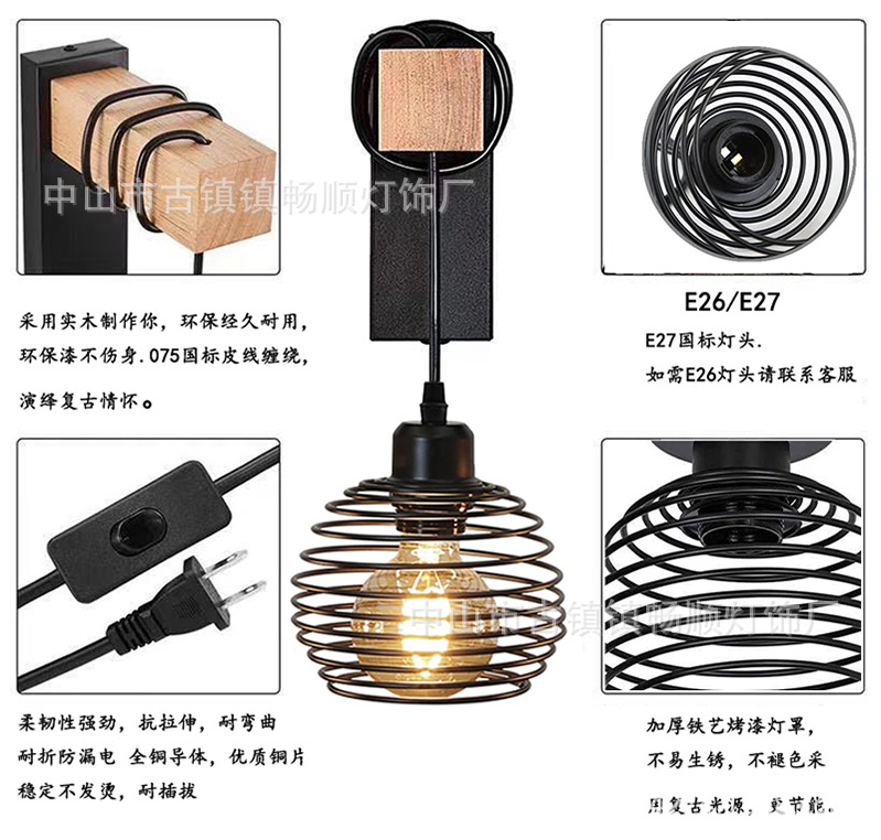 스위치 플러그 벽 램프가있는 미국 복고풍 산업 스타일 중공 벽 램프 베란다 복도 침실을위한 아마존