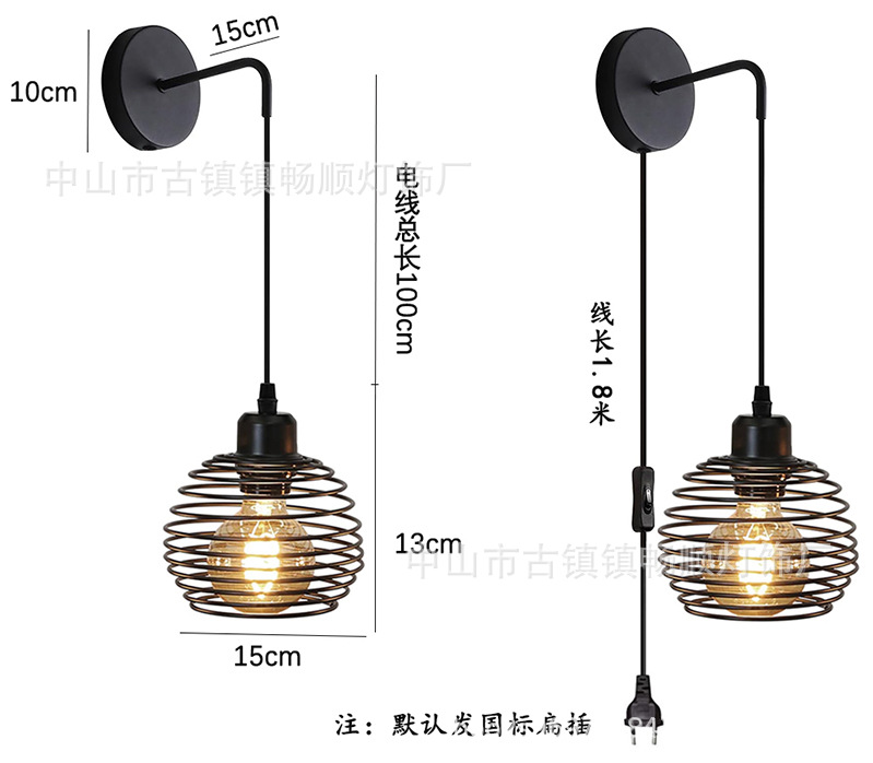 스위치 플러그 벽 램프가있는 미국 복고풍 산업 스타일 중공 벽 램프 베란다 복도 침실을위한 아마존스토어 가기