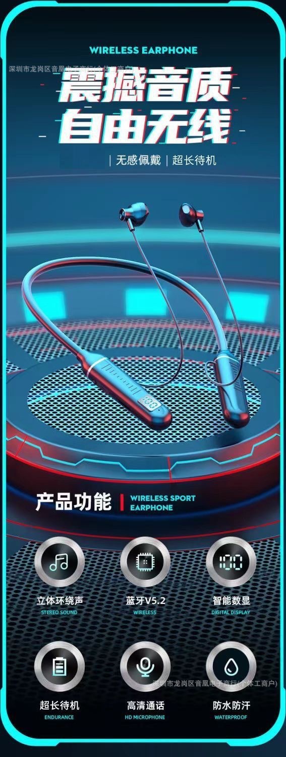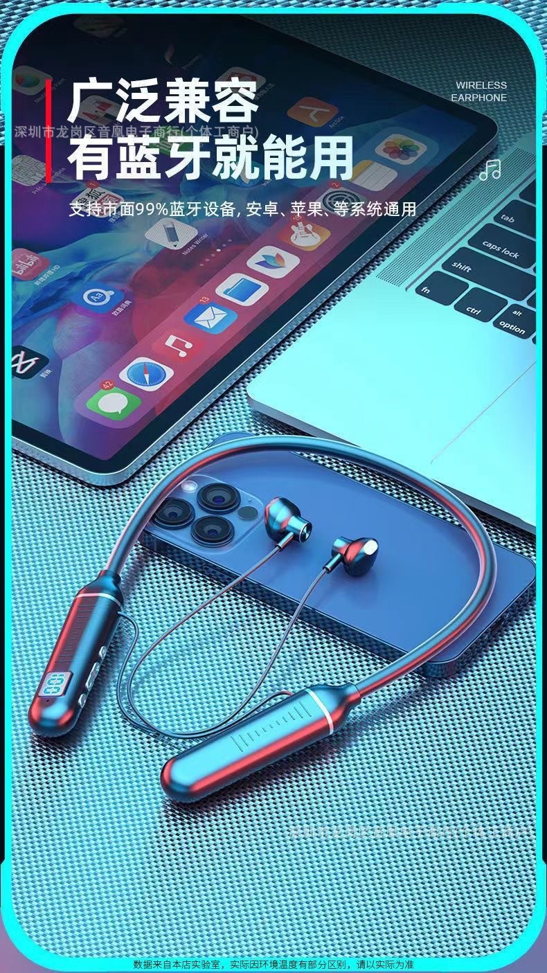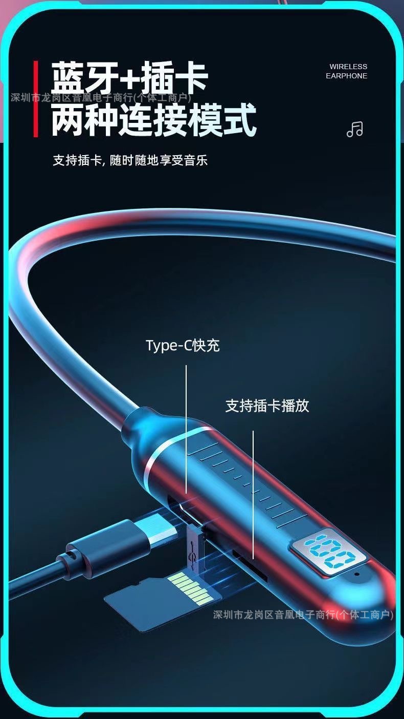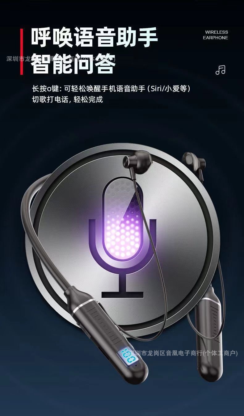 자석 목걸이형 유선 휴대폰 스포츠 블루투스 헤드셋, 매우 긴 배터리 수명, 카드 삽입 가능, 디지털 디스플레이, 중저음 목걸이형스토어 가기