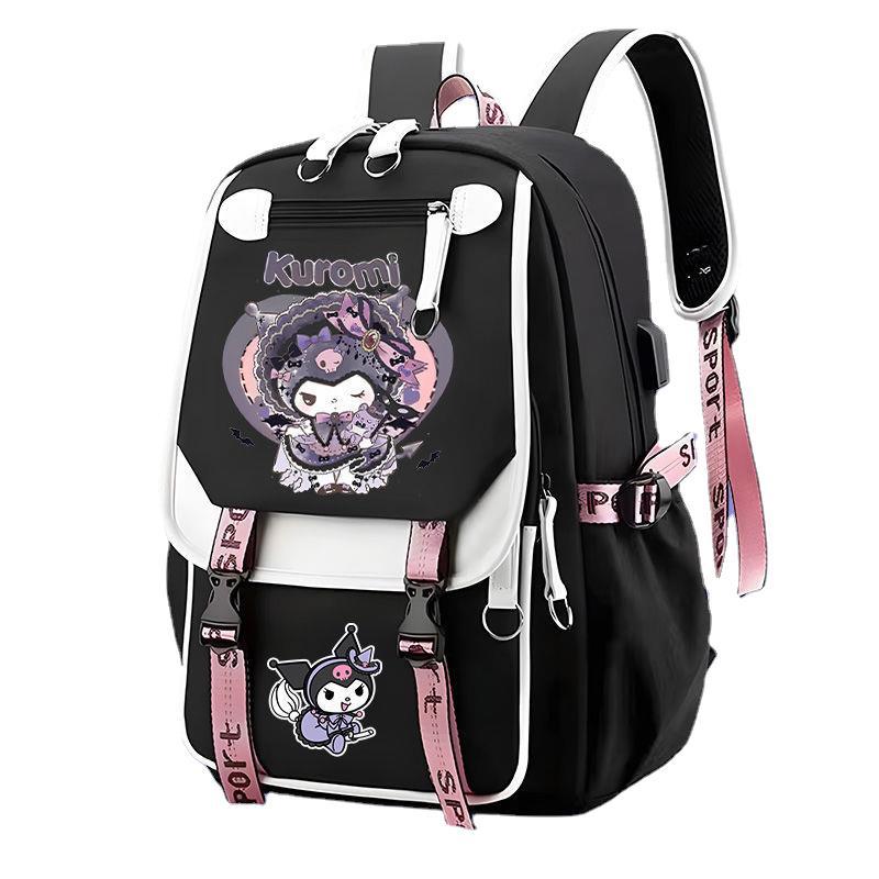 귀여운 만화 패턴 Kulomi 배낭 책가방 중학교 여자 한국식 대용량 캐주얼 경량 배낭