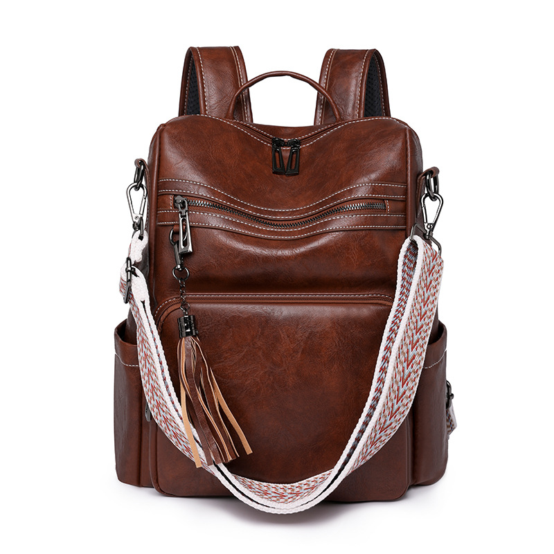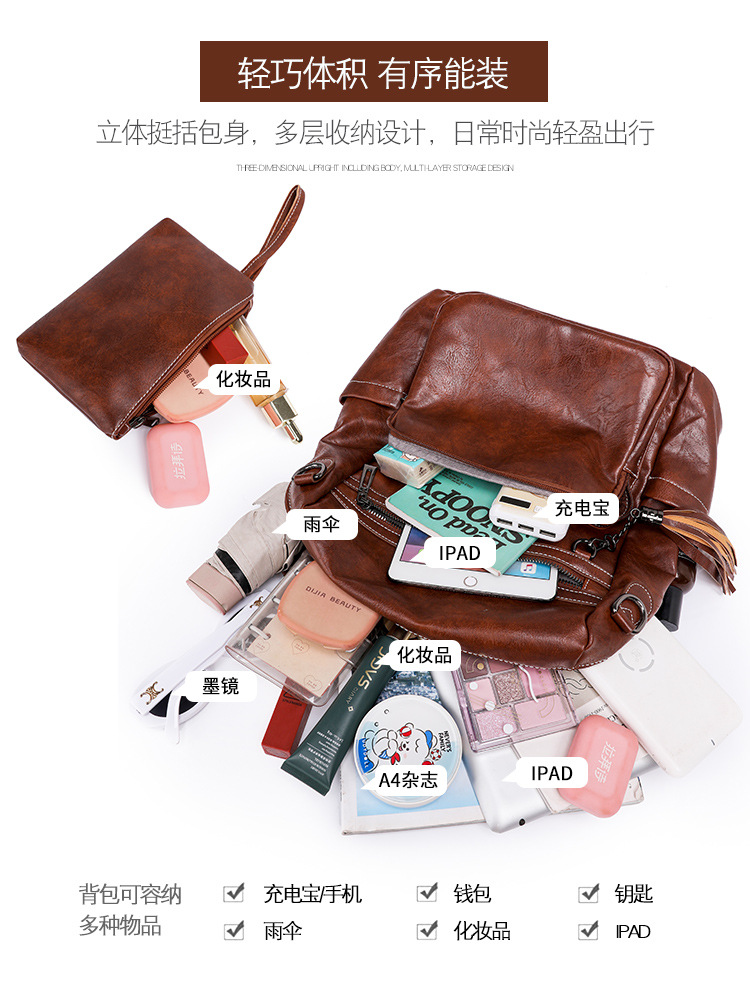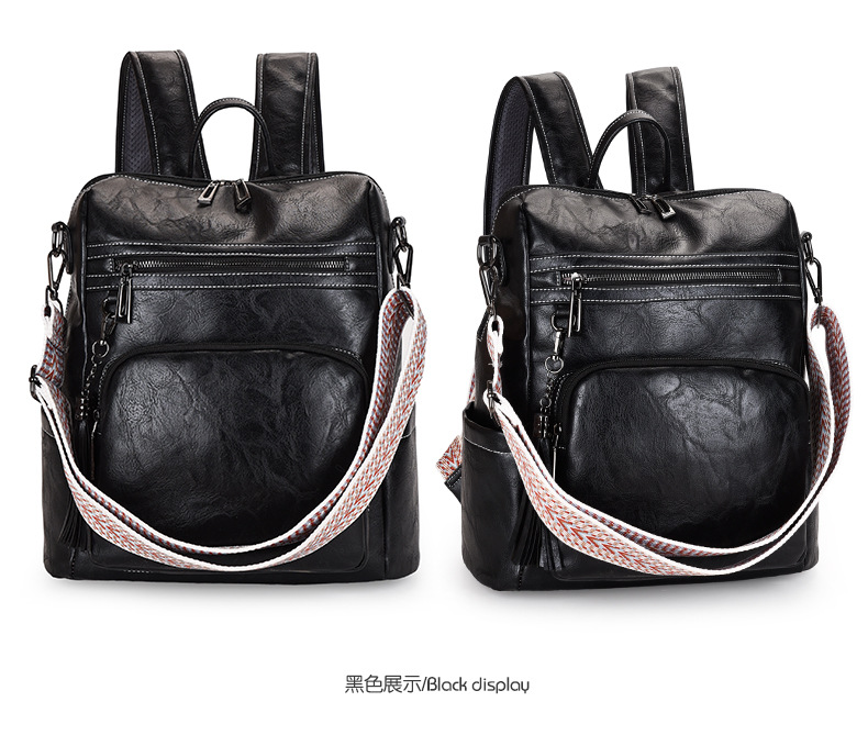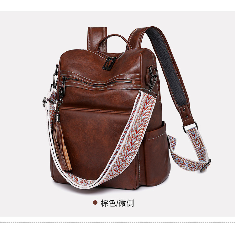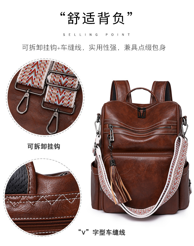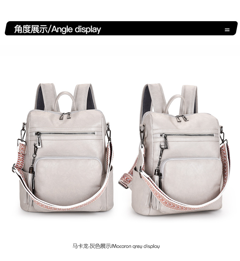 产品正面右侧设计有方便挂扣,搭配与面料一致的加长流苏挂件,挂件可拆卸,可挂置钥匙或各种挂件等物品