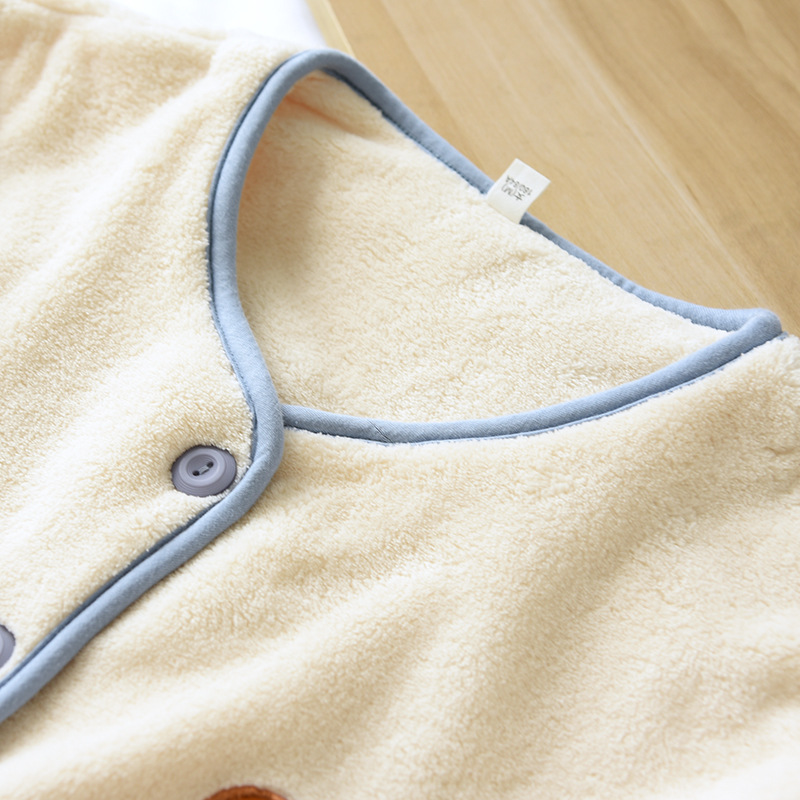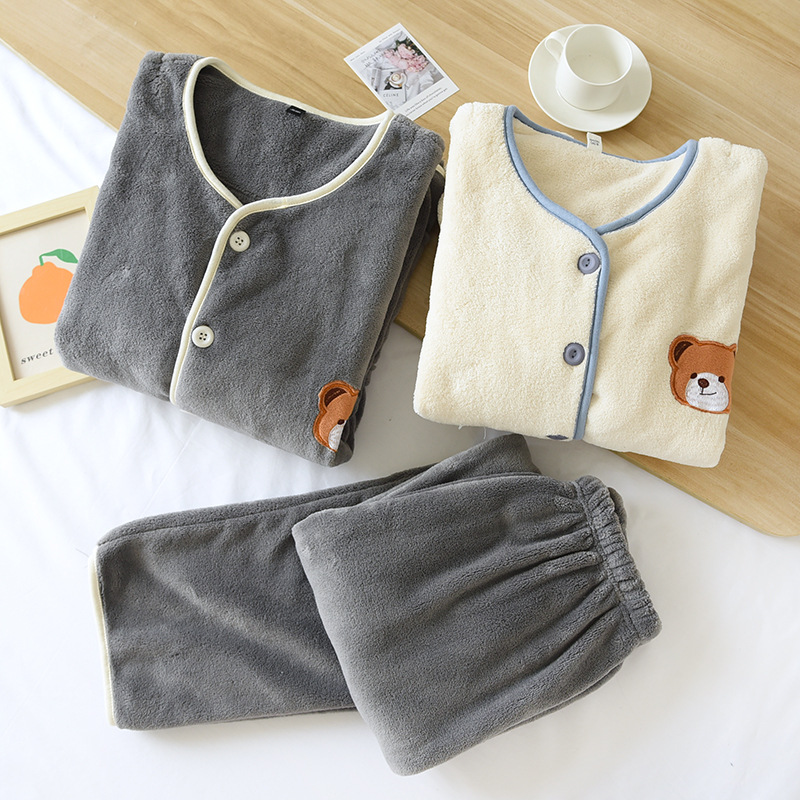 커플 잠옷 봄 가을과 겨울 두꺼운 기모 우유 산호 양털 새로운 만화 곰 남자와 여자의 가정 옷 세트