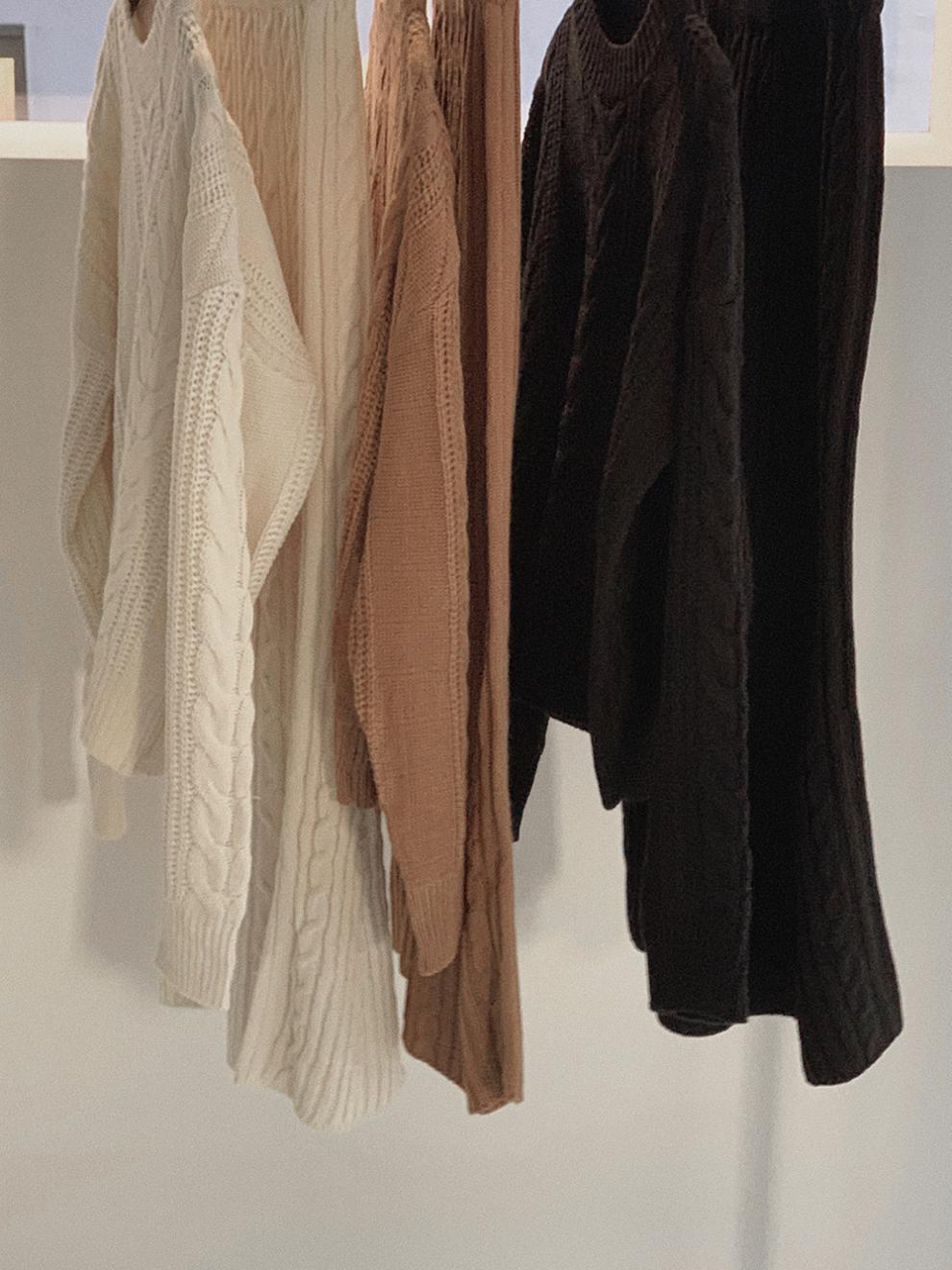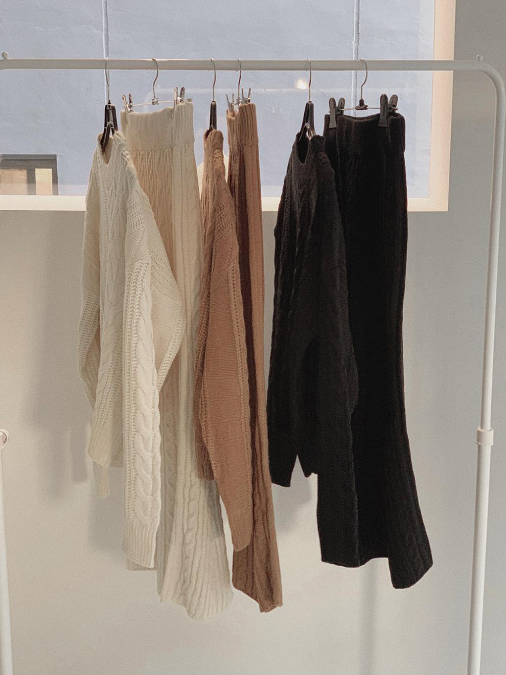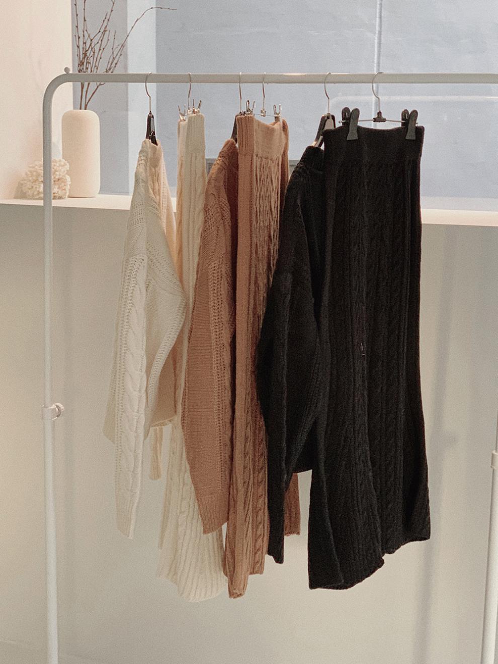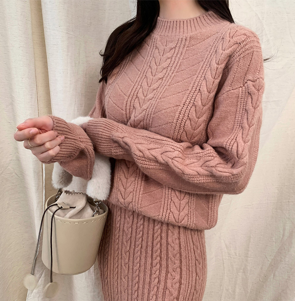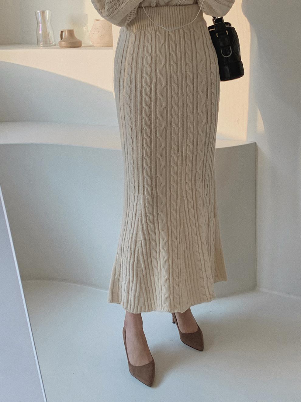 한국풍 시크한 가을 겨울 활용도 높은 트렌디한 루즈핏 스웨터 상의+니트 머메이드 스커트 투피스 세트스토어 가기