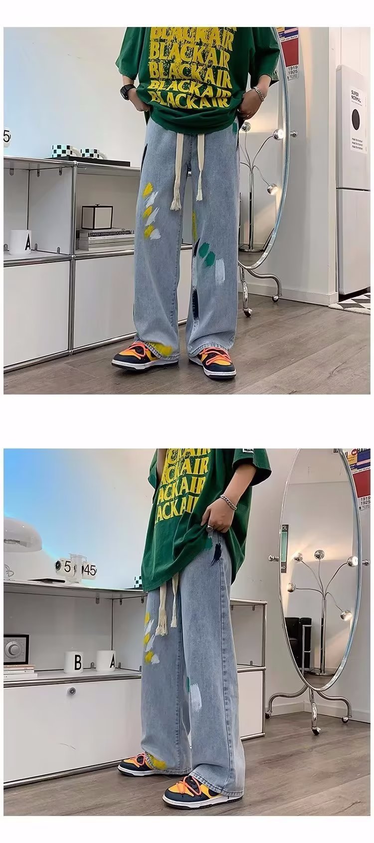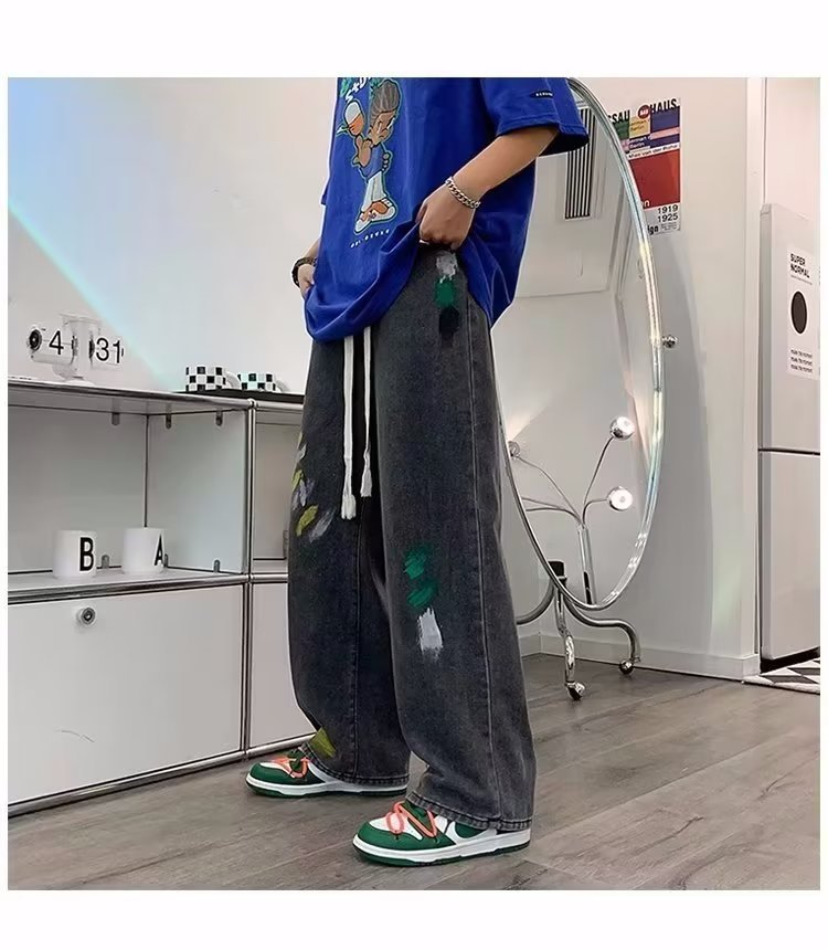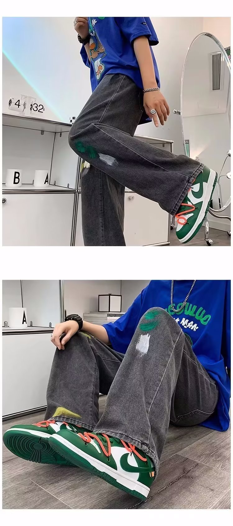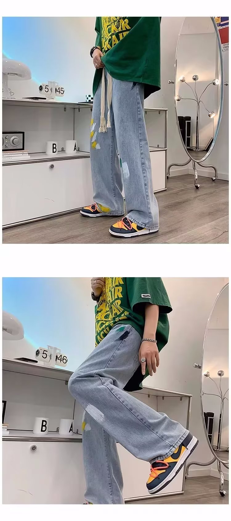 봄과 가을 하이 스트리트 분위기 와이드 레그 청바지 남자의 느슨한 스트레이트 모든 매치 유행 잘 생긴 바지 쉐이크 톤 같은 스타일스토어 가기