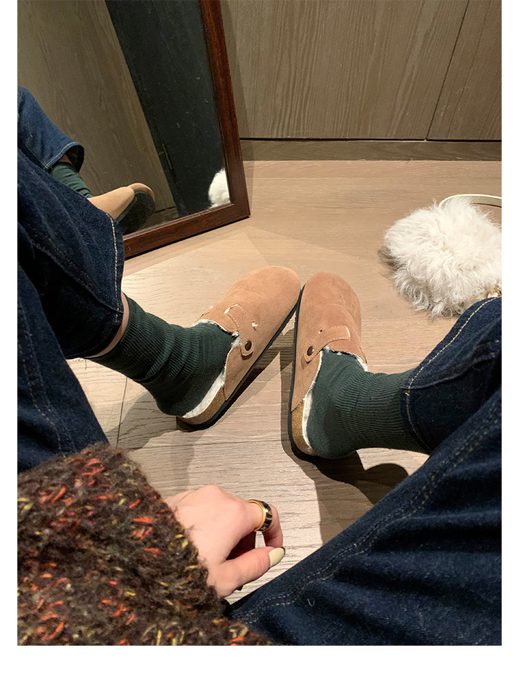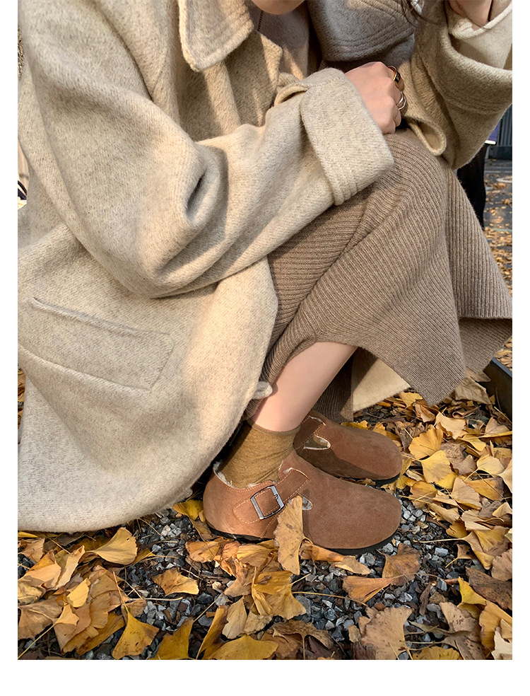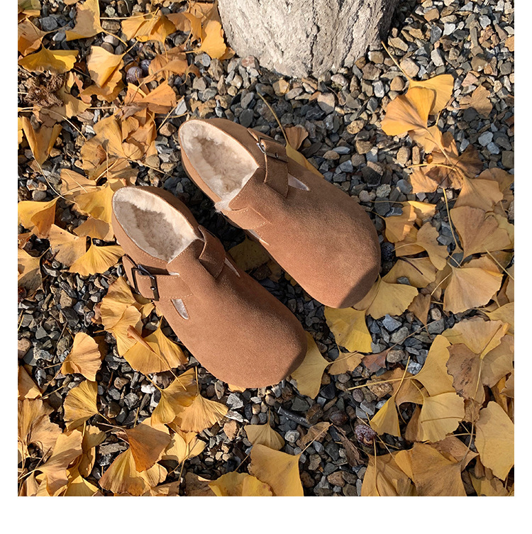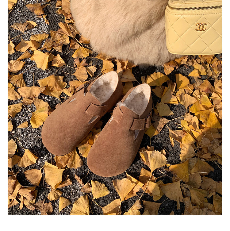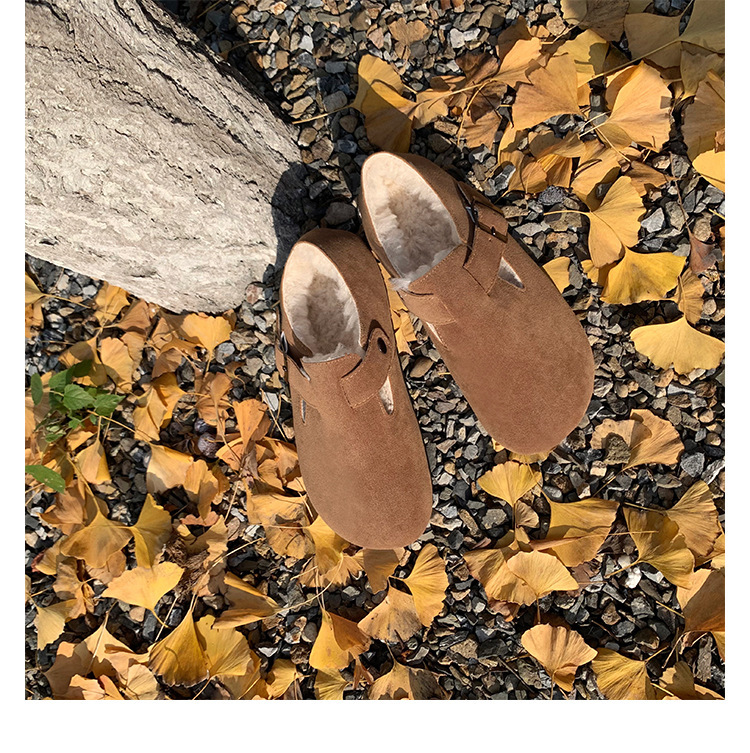 전체 정품 가죽 푹신한 신발 여성의 겉옷 2023 새로운 싱글 신발 빵 면화 신발 겨울 플랫폼 기모 Birkenstocks 신발 여성스토어 가기