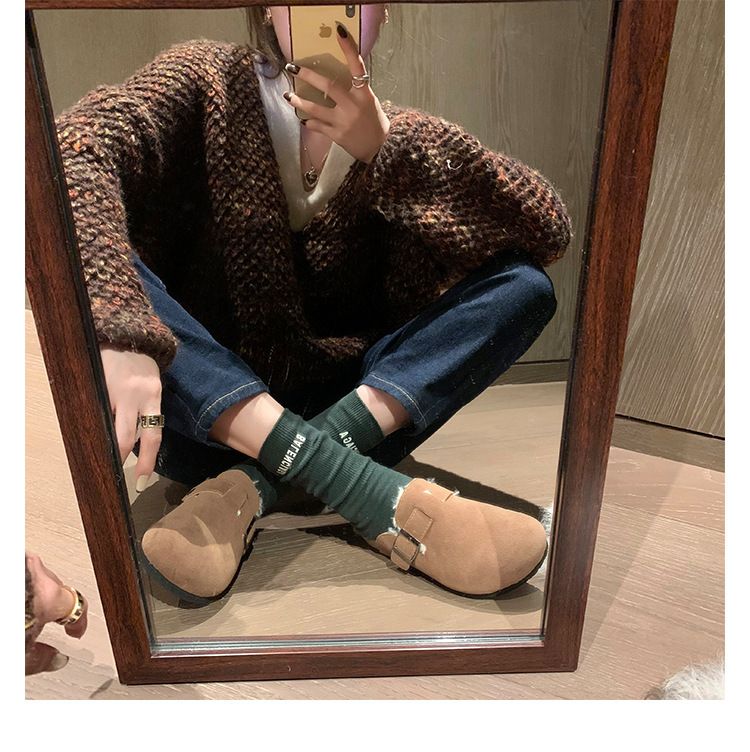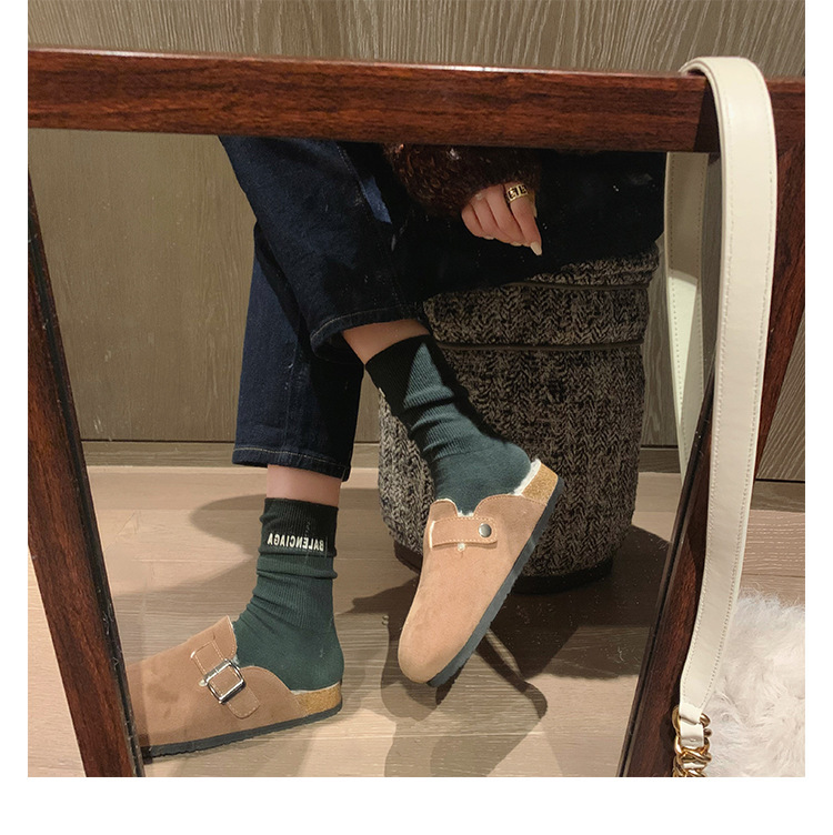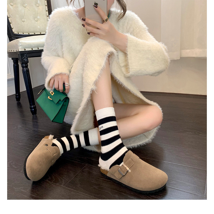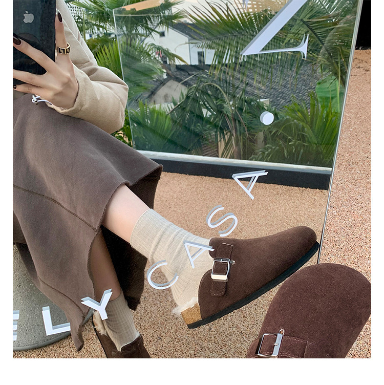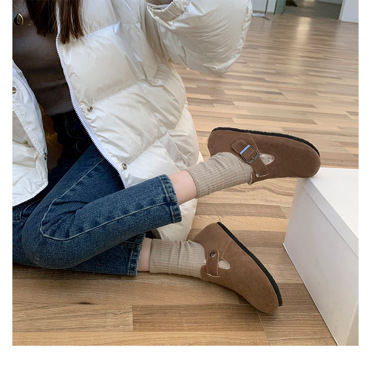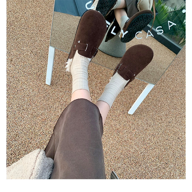 전체 정품 가죽 푹신한 신발 여성의 겉옷 2023 새로운 싱글 신발 빵 면화 신발 겨울 플랫폼 기모 Birkenstocks 신발 여성스토어 가기