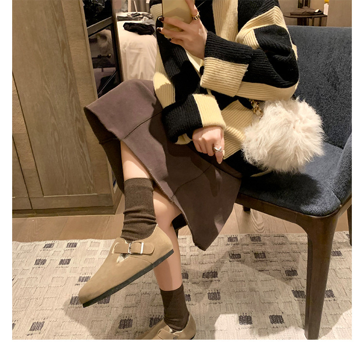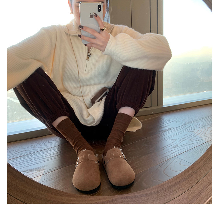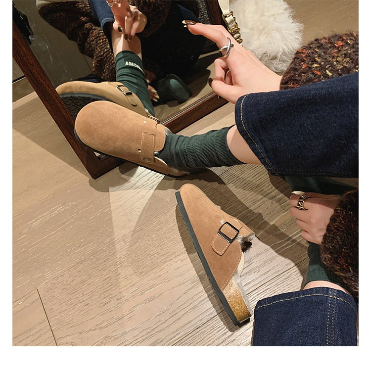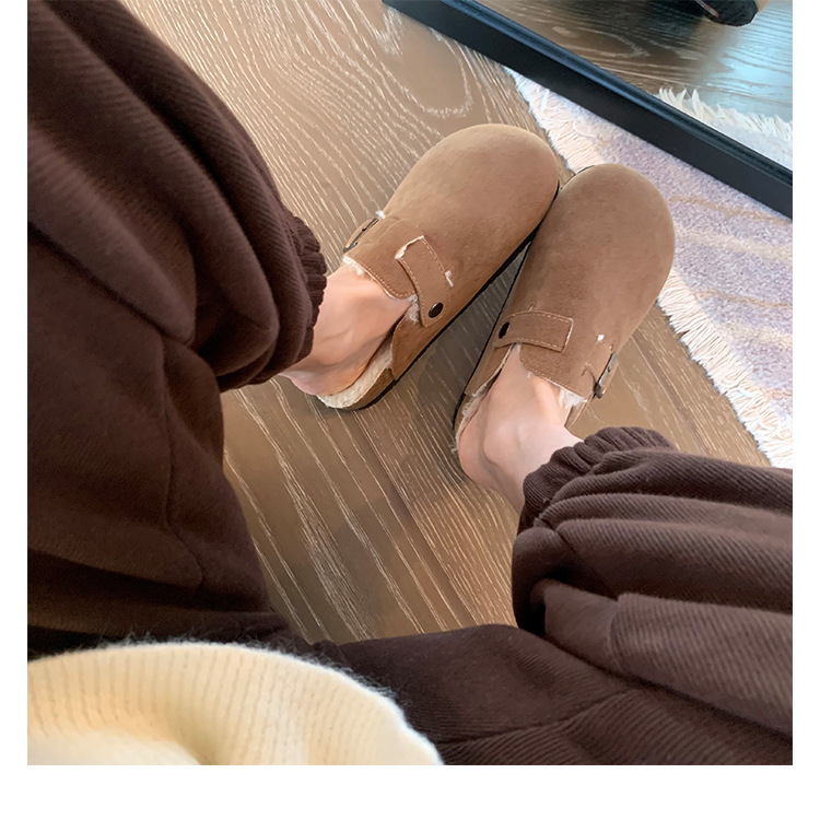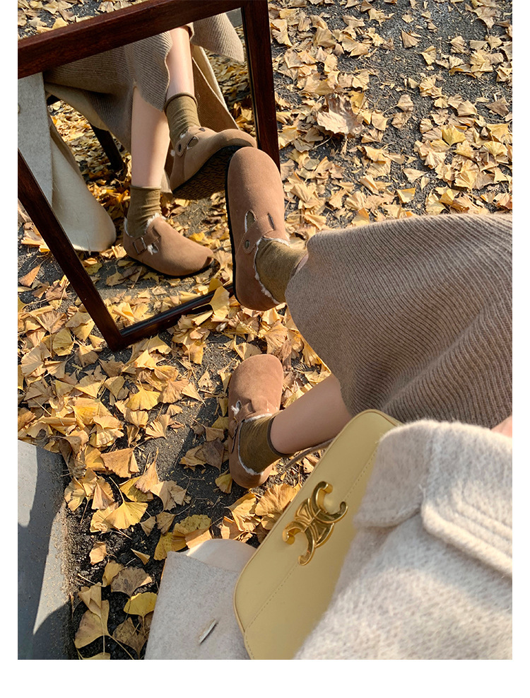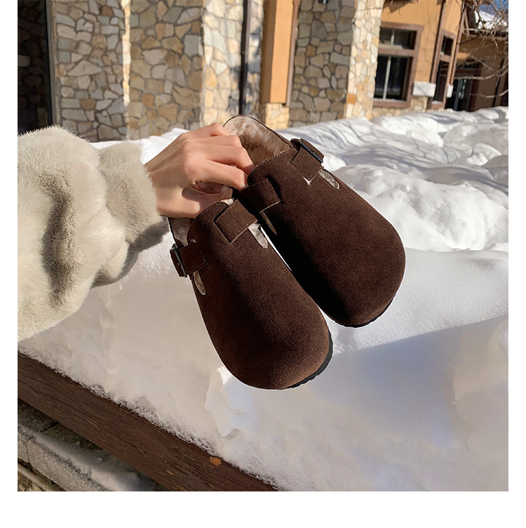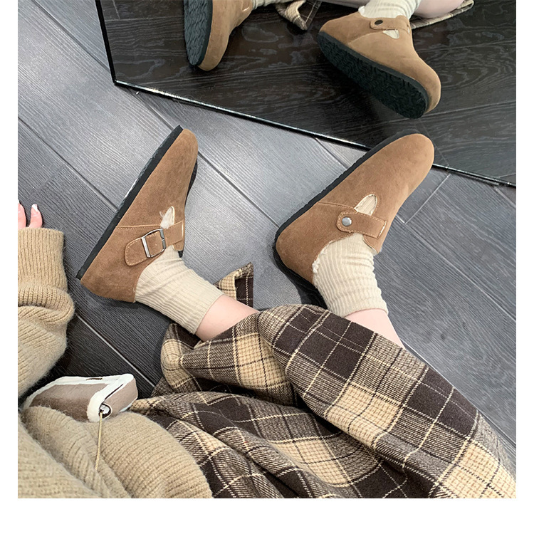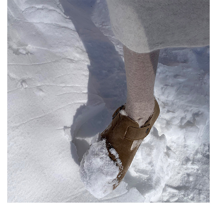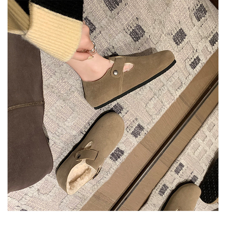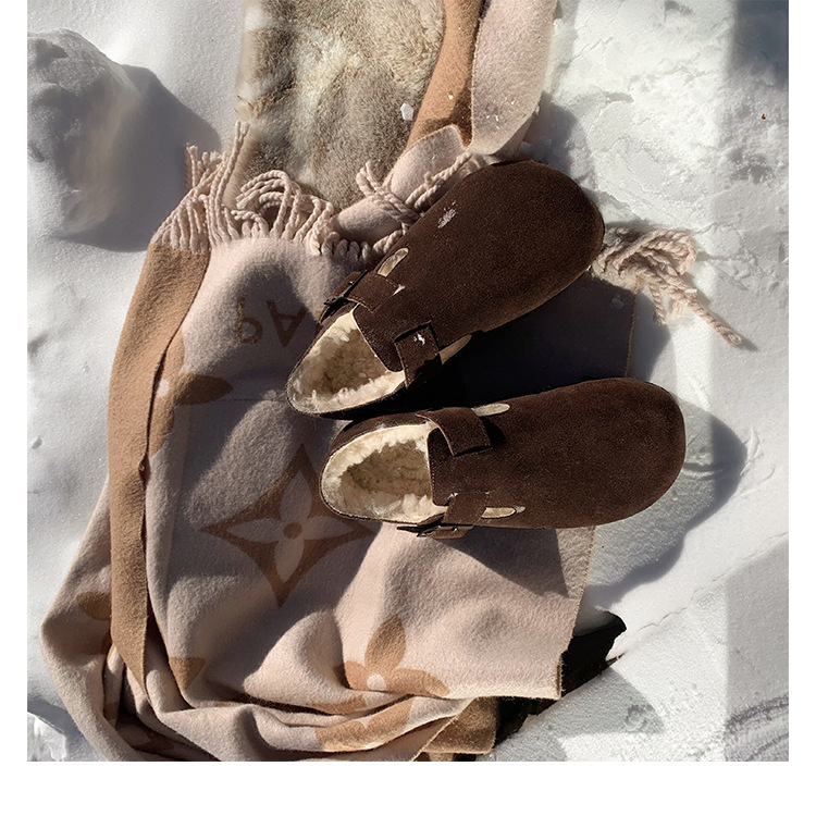전체 정품 가죽 푹신한 신발 여성의 겉옷 2023 새로운 싱글 신발 빵 면화 신발 겨울 플랫폼 기모 Birkenstocks 신발 여성