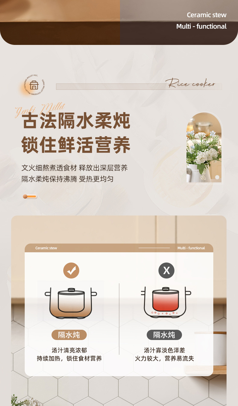 • 기계식 싱글 포트 2L + 세라믹 스튜 컵 1L + 찜기