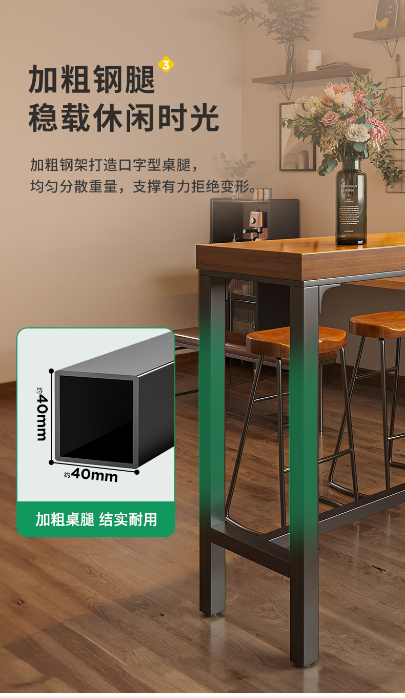 • [하이 싱글 테이블 + 하이 솔리드 우드 바 스툴 * 3] 200*40*105cm