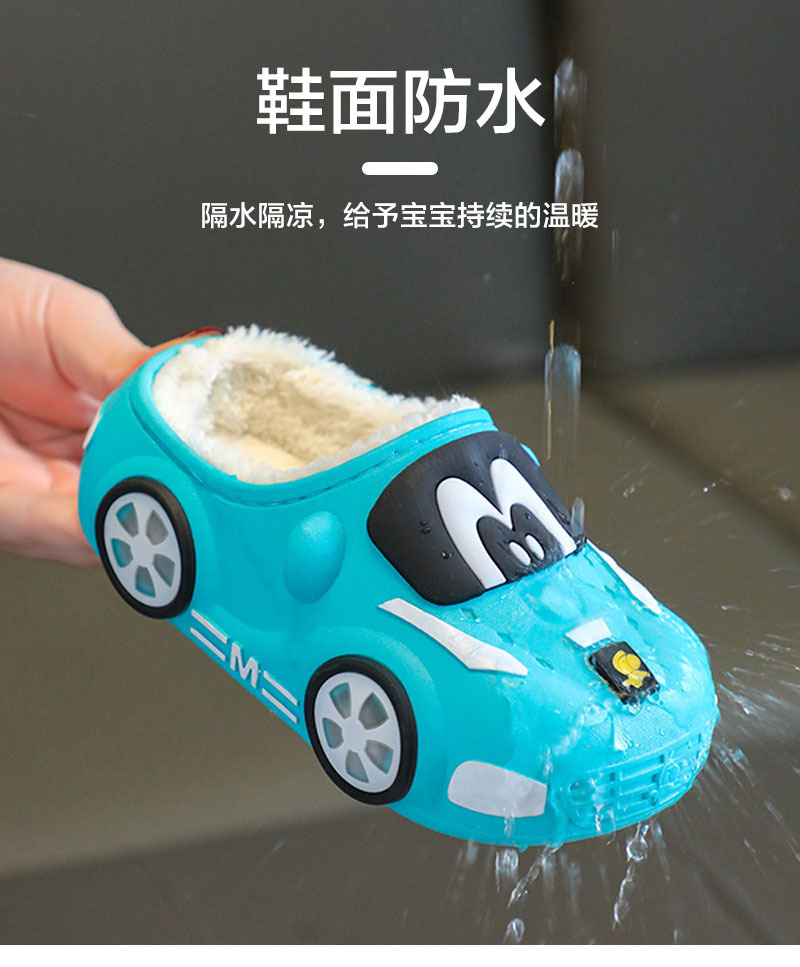소년과 소녀를위한 겨울 어린이 면 슬리퍼 방수 귀여운 실내 홈 미끄럼 방지 부드러운 바닥 기모 면 슬리퍼와 따뜻한 가방