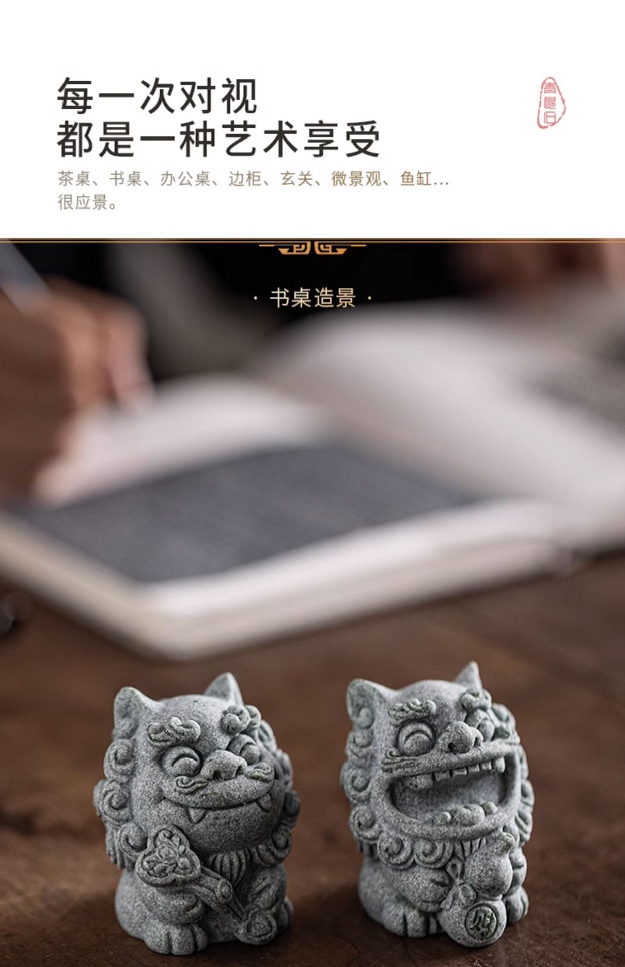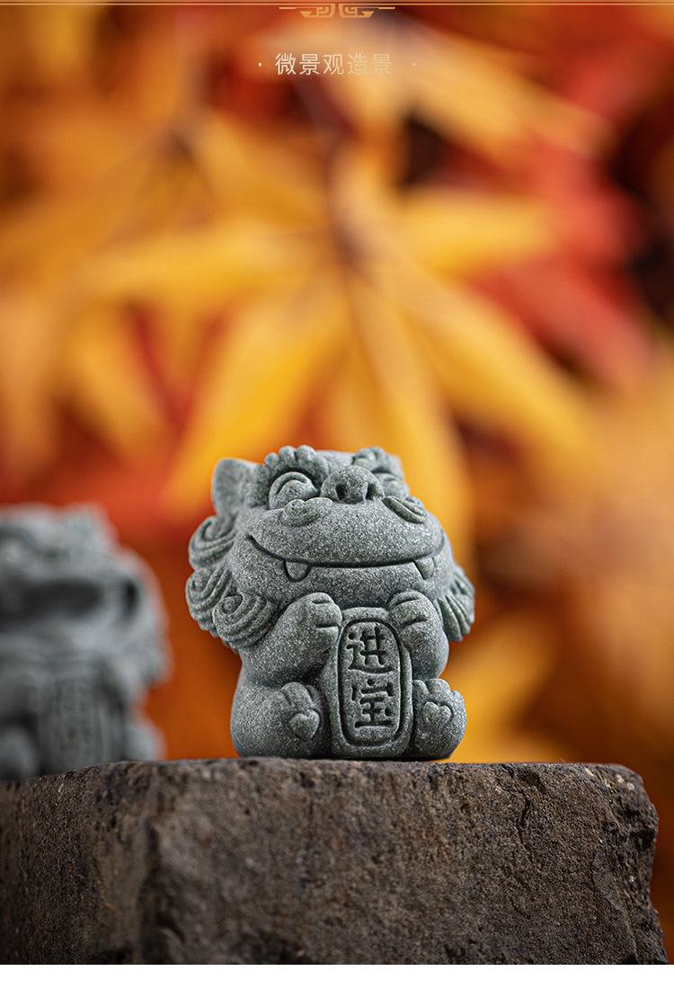 국립 조수 스타일 돌 사자 쌍 작은 스타일 사자 데스크탑 마스코트 차 애완 동물 장식품 창조적 인 화분 탱크 장식스토어 가기
