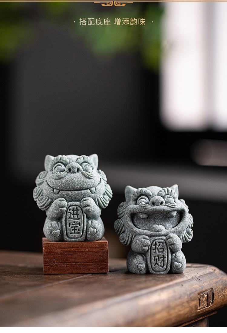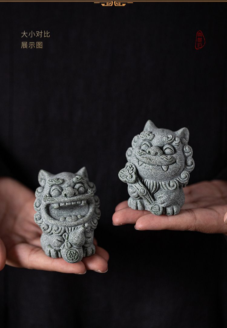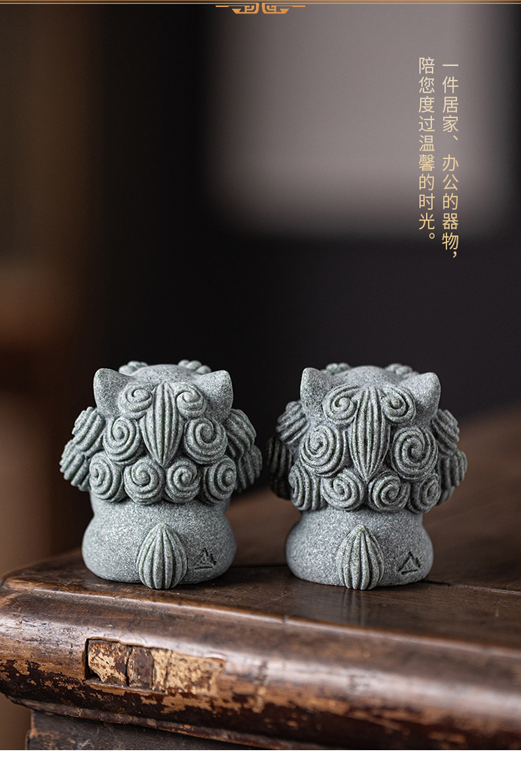 국립 조수 스타일 돌 사자 쌍 작은 스타일 사자 데스크탑 마스코트 차 애완 동물 장식품 창조적 인 화분 탱크 장식