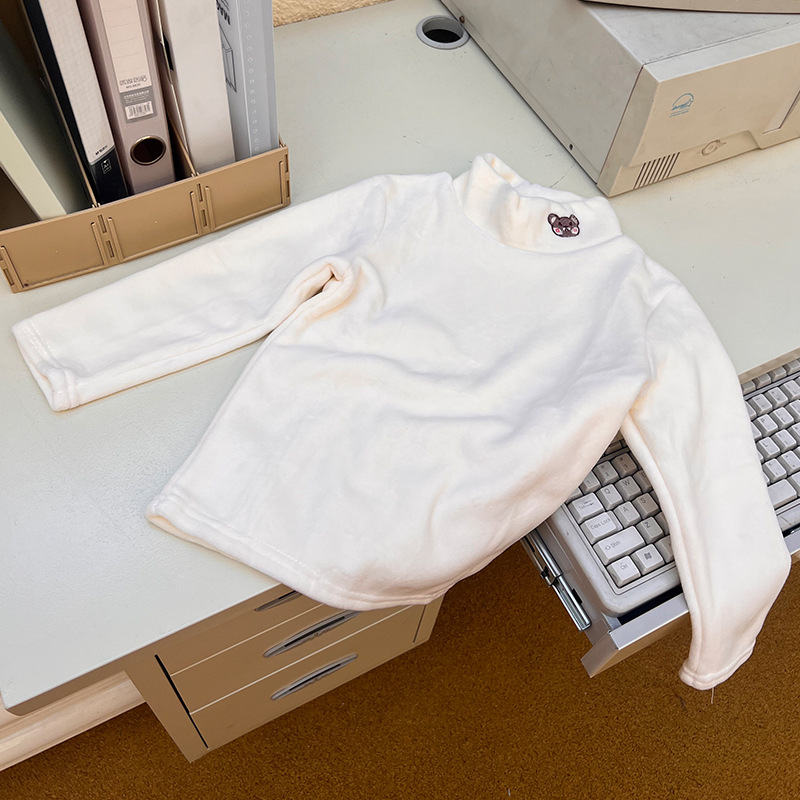 어린이 하프 하이 칼라 베이스 셔츠 양면 양털 겨울 기모 소년과 소녀를위한 두꺼운 따뜻한 탑 미드 칼라 긴팔 티셔츠