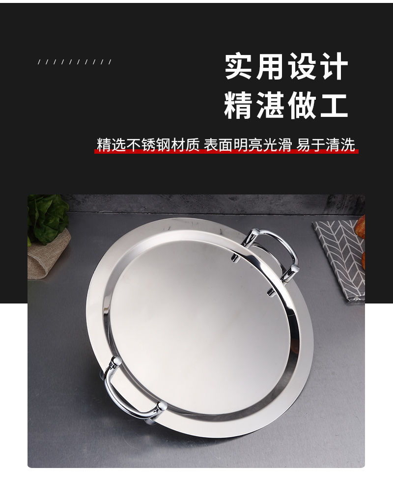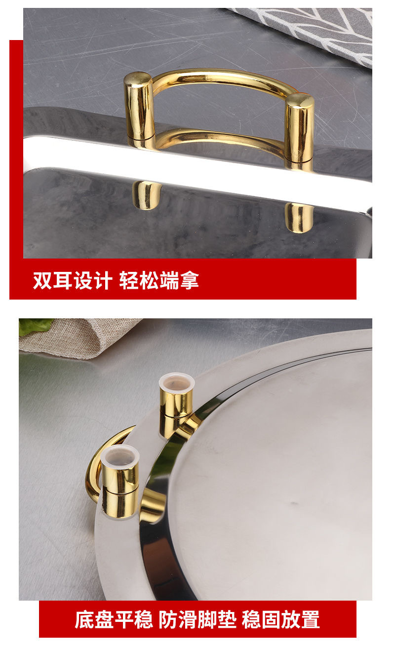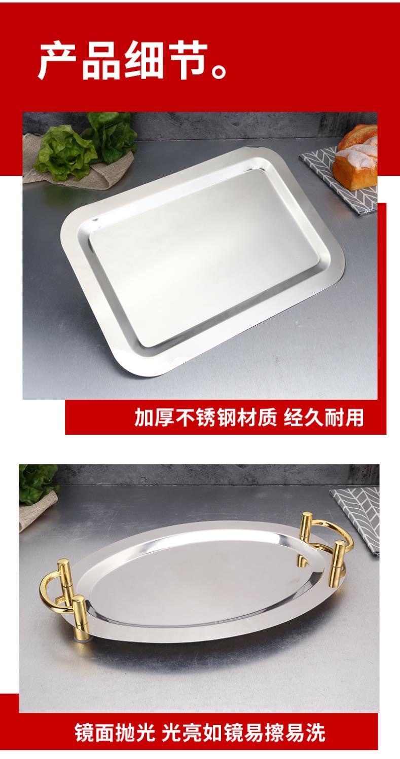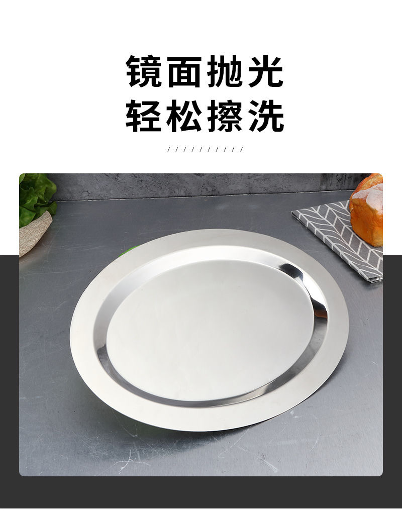 귀 쟁반과 스테인레스 스틸 거울 접시 과일 접시 상단 플레이트 플랫 바닥 희미한 냄비 접시 호텔 상업용 뷔페 접시