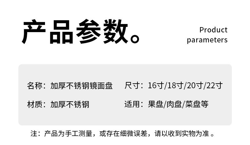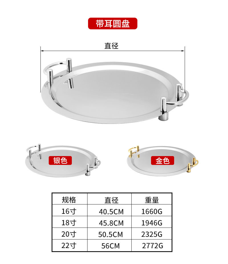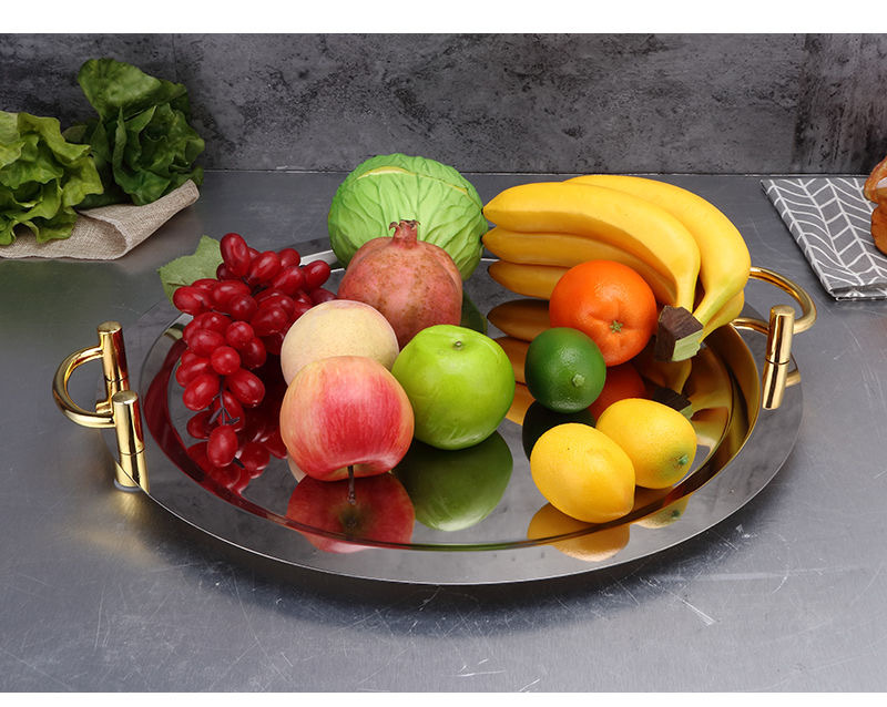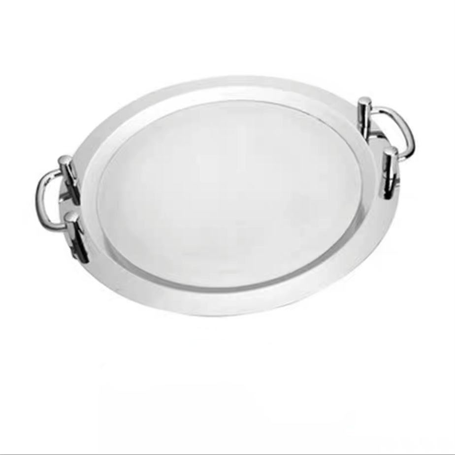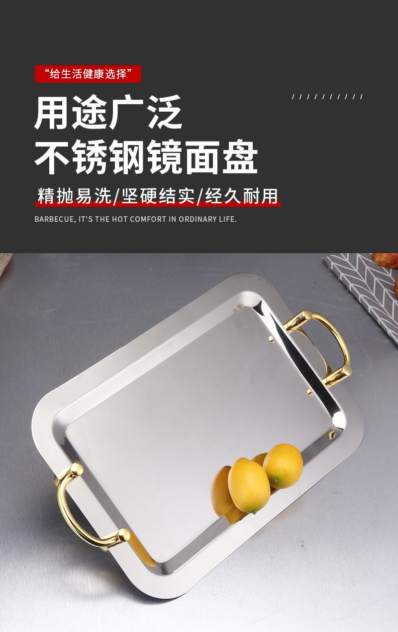 귀 쟁반과 스테인레스 스틸 거울 접시 과일 접시 상단 플레이트 플랫 바닥 희미한 냄비 접시 호텔 상업용 뷔페 접시