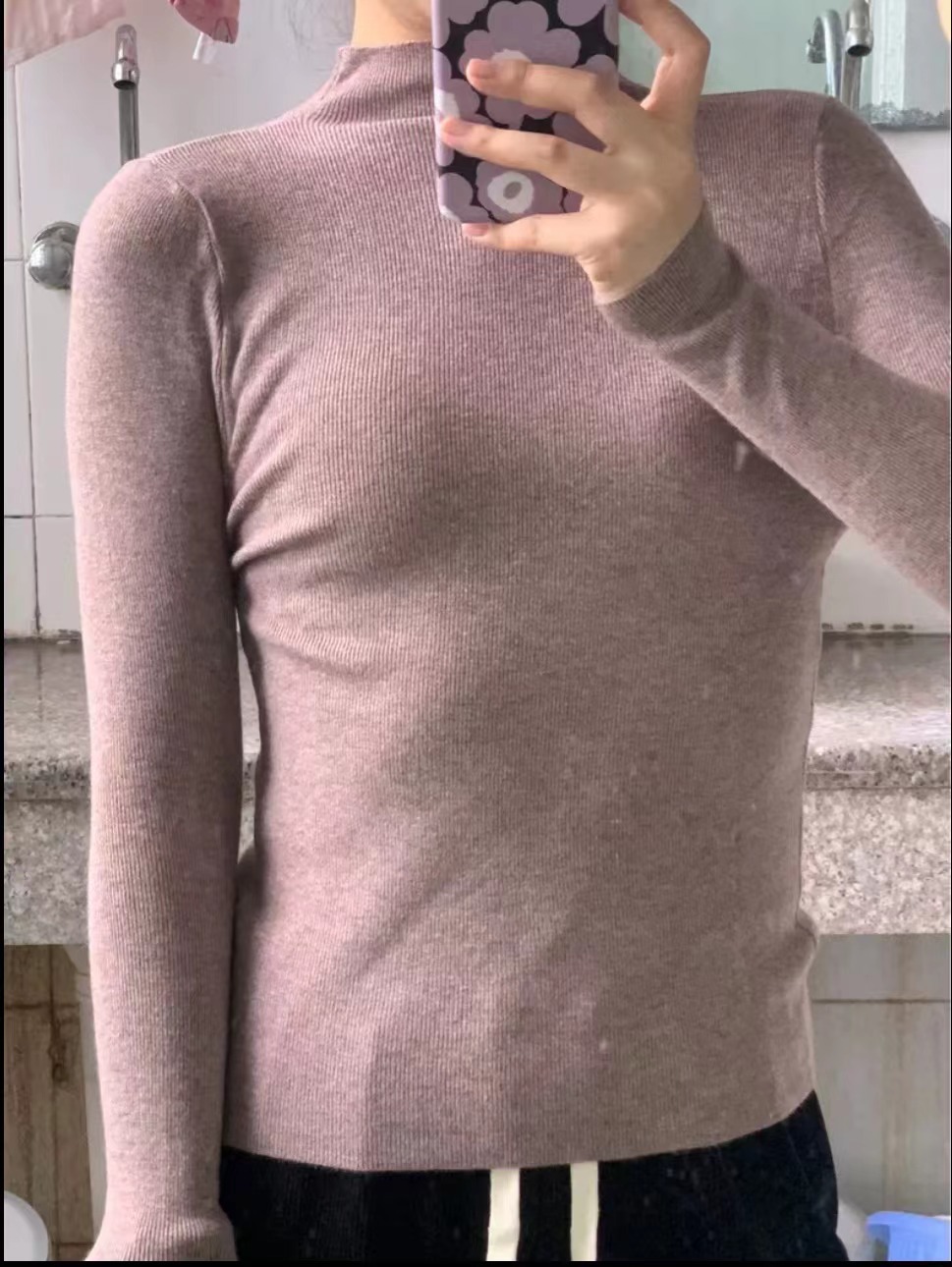 Mu Zi Lian 스웨터 니트 스웨터 여성용 가을과 겨울 세미 하이 칼라 베이스 셔츠 올 매치 웨스턴 스타일 여성용 긴팔 내부 슬림 핏 탑스토어 가기