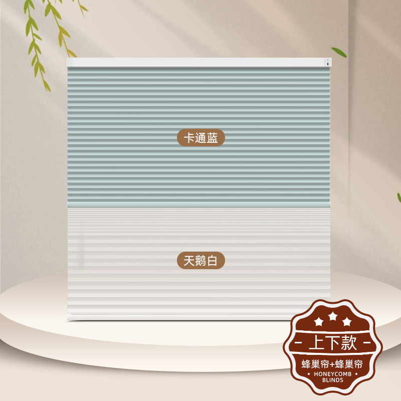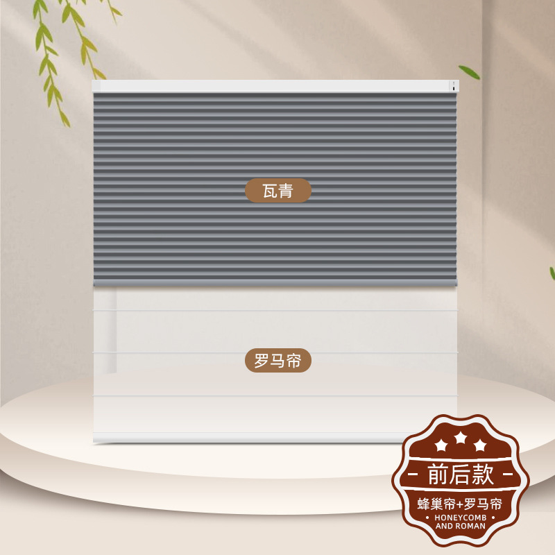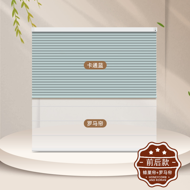 • [전면 및 후면 모델] 벌집 커튼 + 로마 커튼 [카툰 블루]