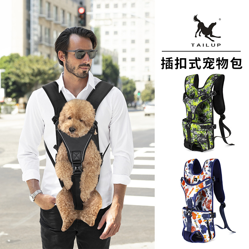 TAILUP新品宠物插扣式胸前包可调节狗狗背包迷彩印花中小犬携带包
