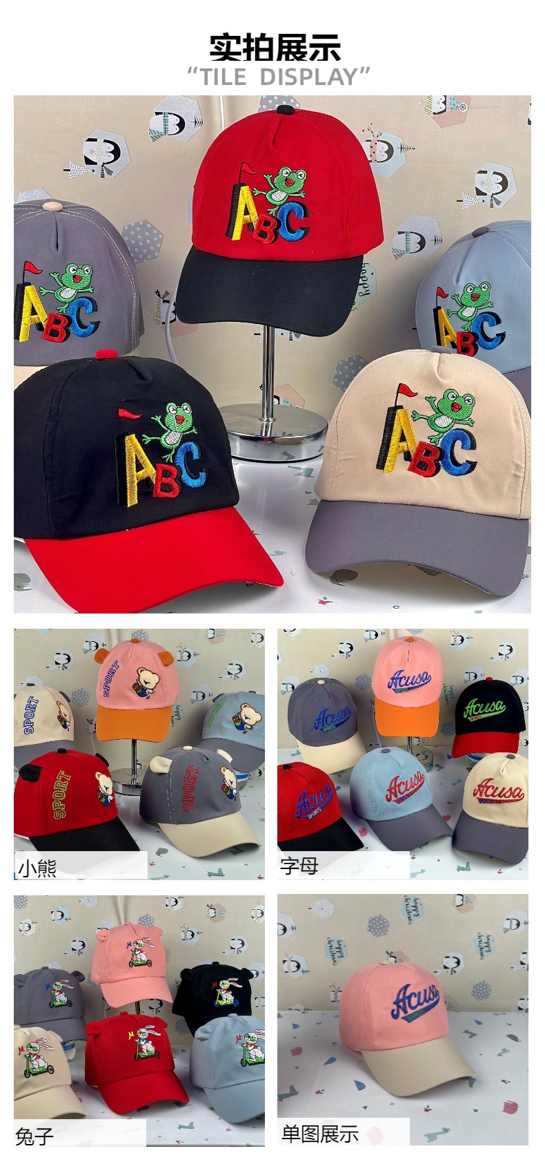 봄과 가을 얇은 새로운 스타일 모자 편지 자수 라벨 모자 야구 대비 색상 만화 차양 어린이 모자스토어 가기