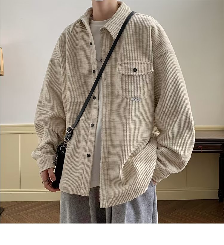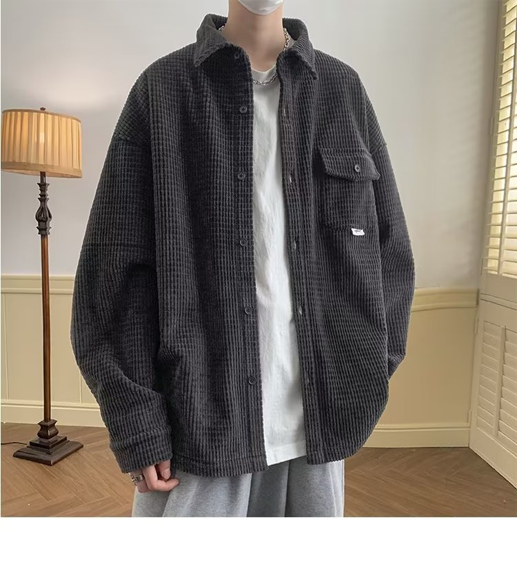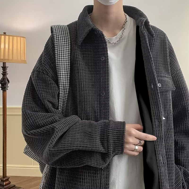 심플 셔츠 남성용 긴팔 겨울 유행 느슨한 모든 매치 코듀로이 셔츠 푹신한 잘 생긴 코트 셔츠 옷 게으른스토어 가기
