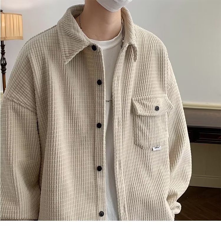 심플 셔츠 남성용 긴팔 겨울 유행 느슨한 모든 매치 코듀로이 셔츠 푹신한 잘 생긴 코트 셔츠 옷 게으른