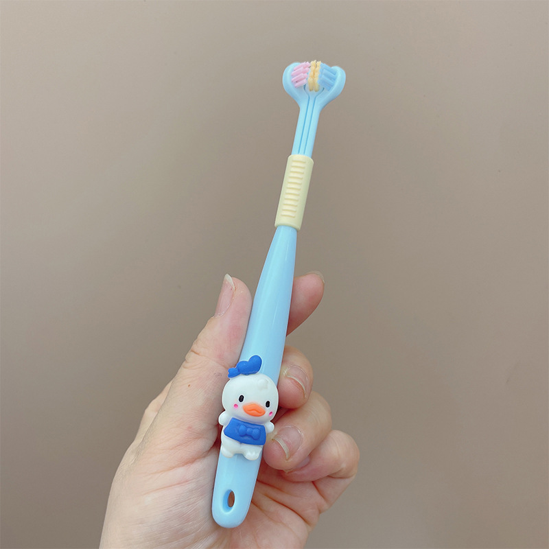 귀여운 오리 3D 양면 어린이 칫솔 부드러운 머리 작은 머리 치간 브러시 2-12 세 치아 보호 휴대용 어린이 학생 칫솔