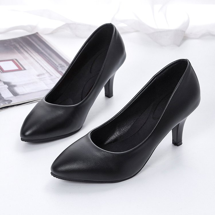 2023 새 신발 하이힐 여성용 스틸레토 힐 뾰족한 전문 여성 신발 모든 매치 작업 신발 여성용 싱글 신발 여성용 블랙 가죽 신발