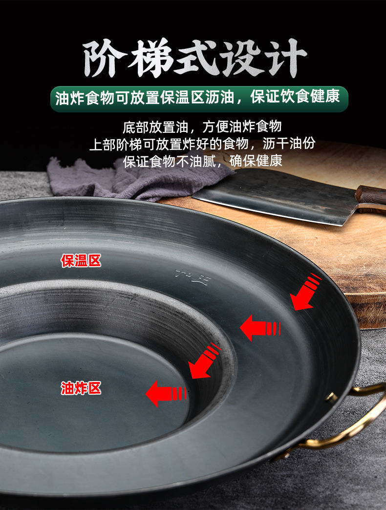 감자 튀김을 위한 두껍고 깊은 구이저우 철판, 가정용 및 상업용 전용, 일체형 평평한 바닥의 붙지 않는 오목 및 볼록한 철판