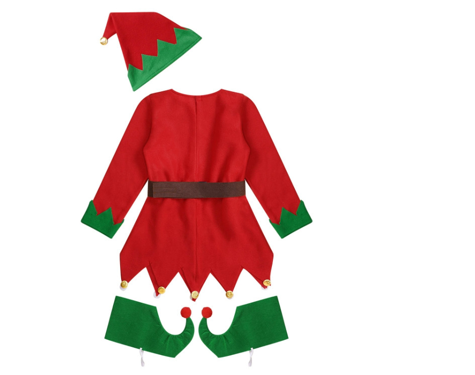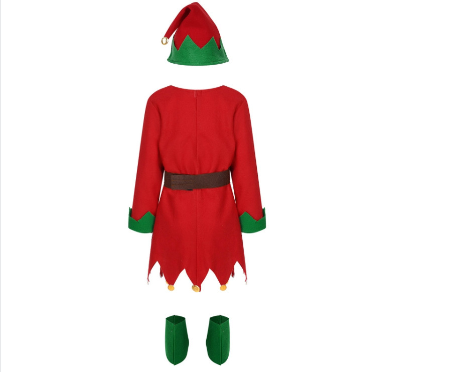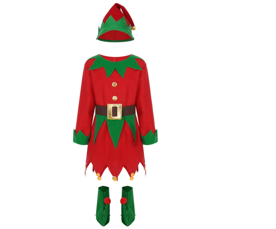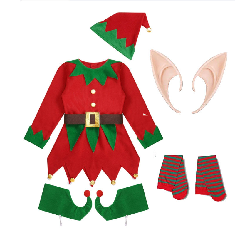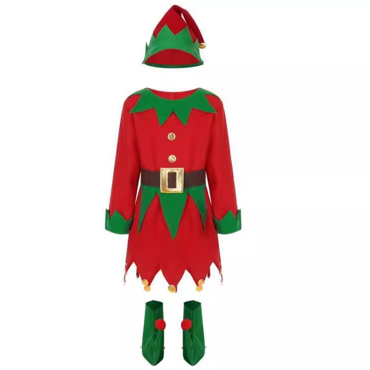 유럽과 미국 크로스 국경 성인 크리스마스 의상 어린이 크리스마스 엘프 세트 빨간색과 녹색 색상 코스프레 의상스토어 가기