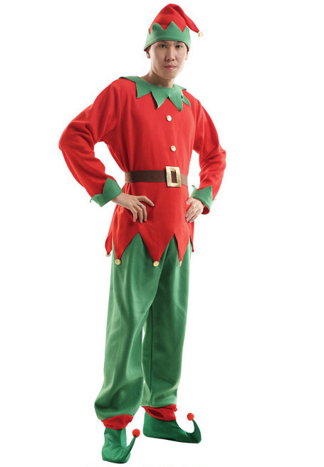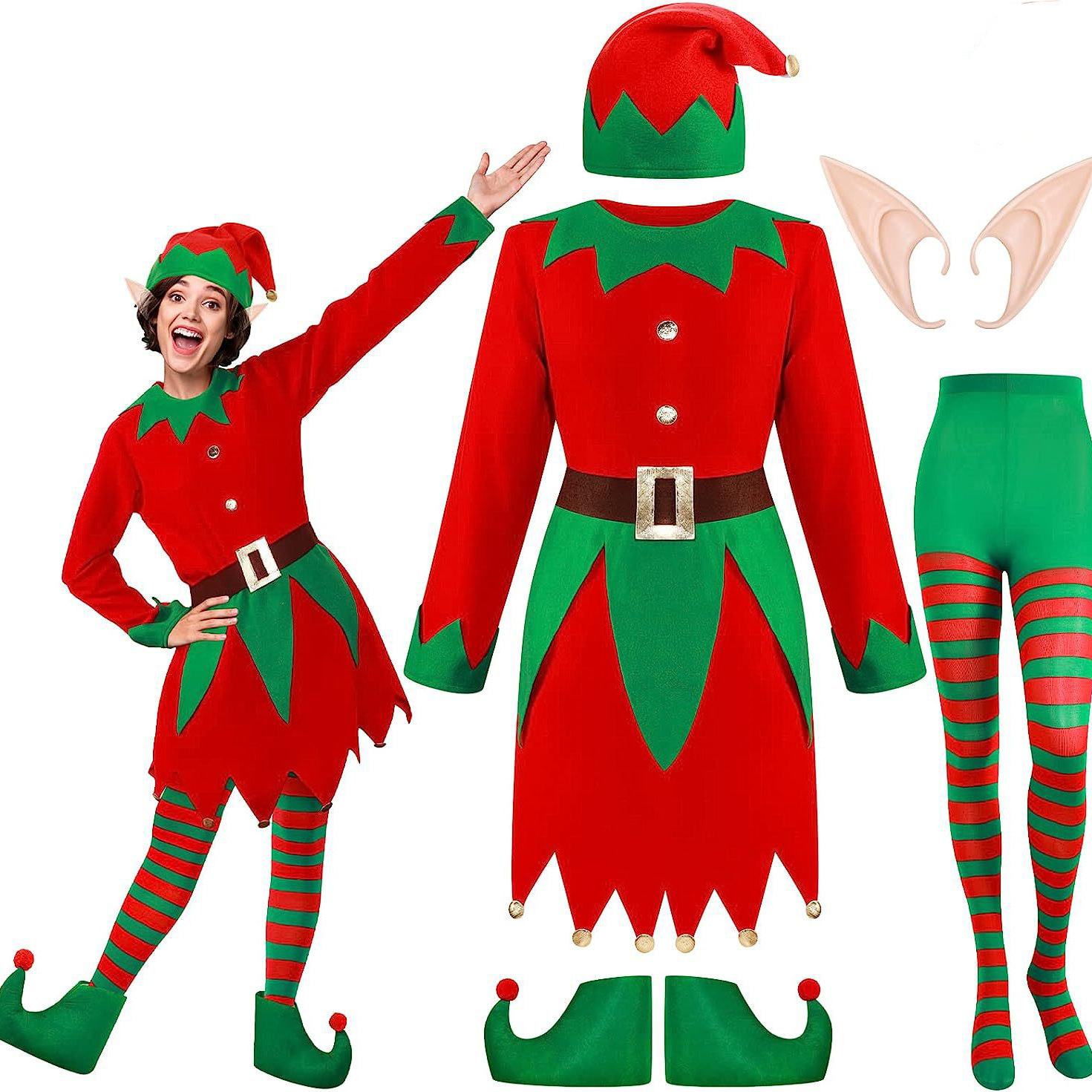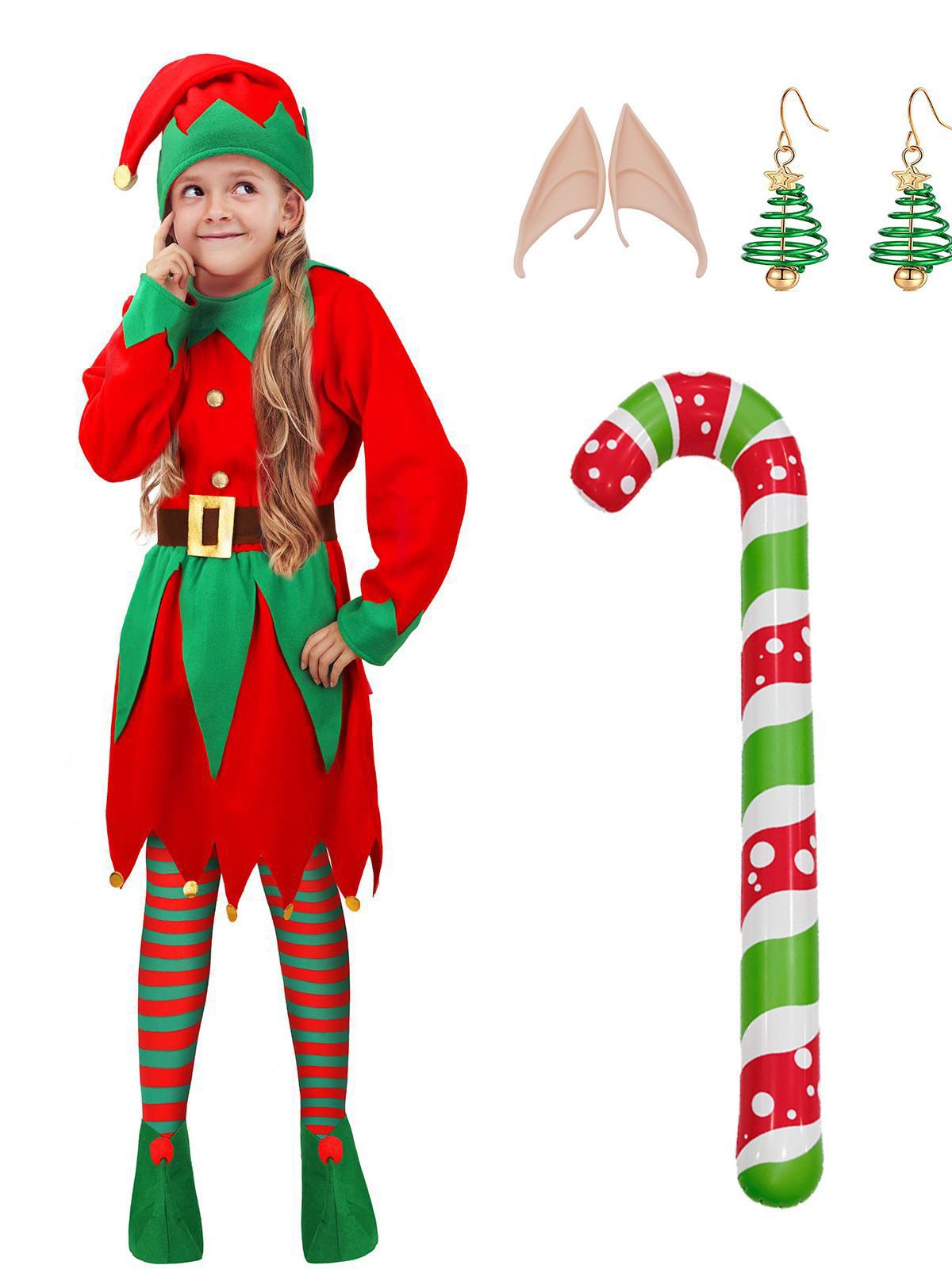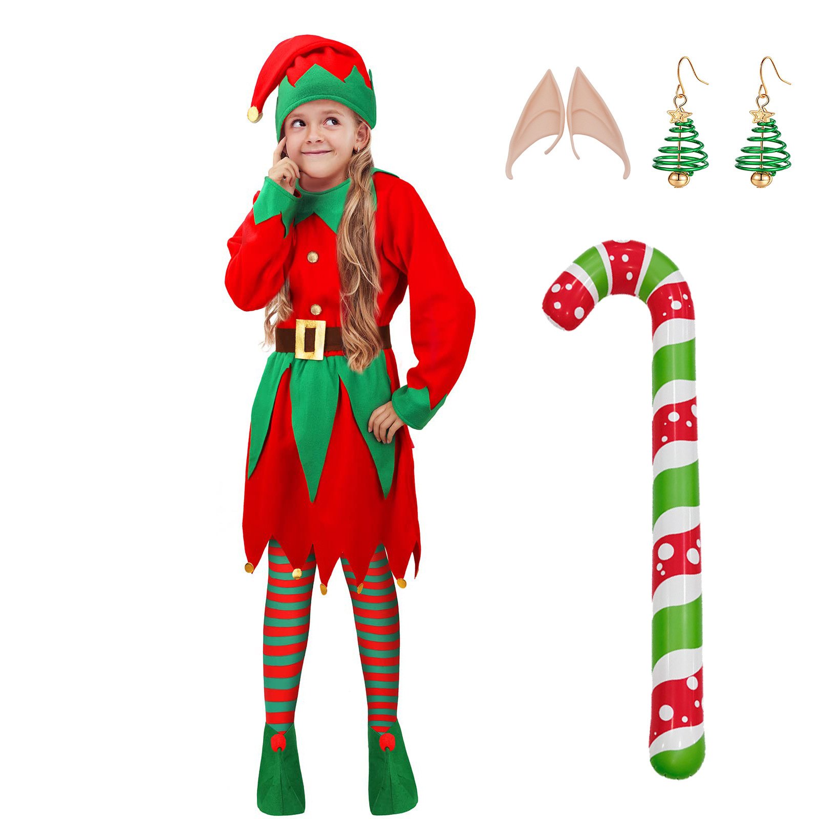 유럽과 미국 크로스 국경 성인 크리스마스 의상 어린이 크리스마스 엘프 세트 빨간색과 녹색 색상 코스프레 의상스토어 가기