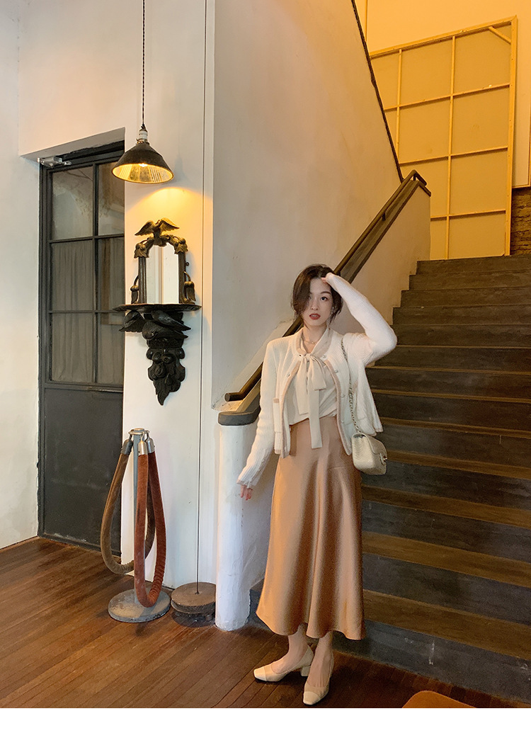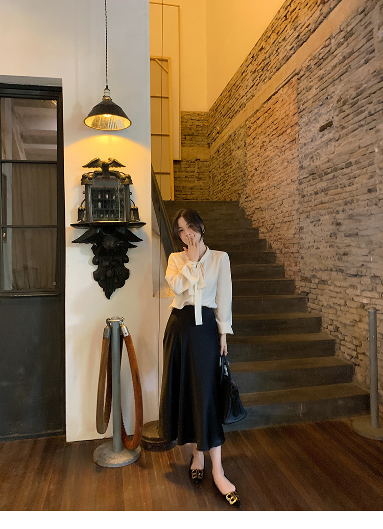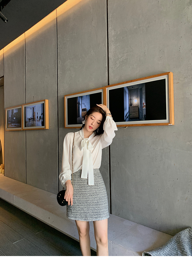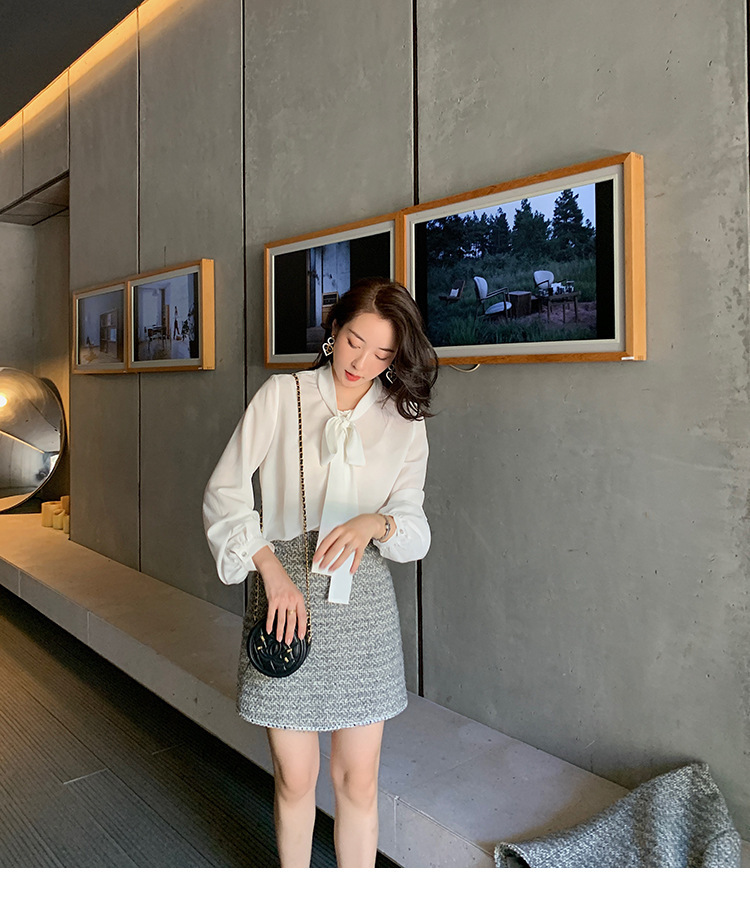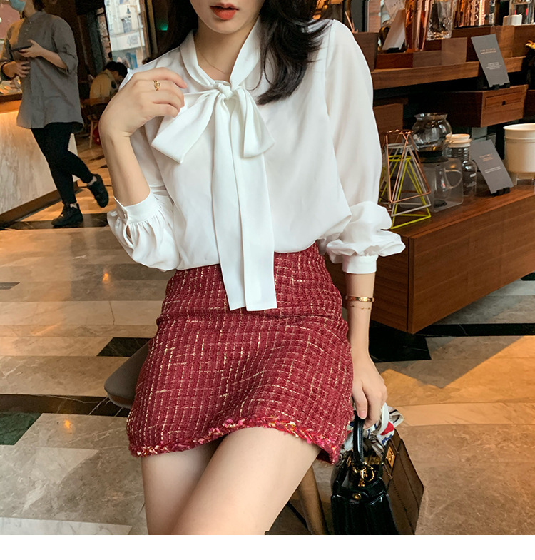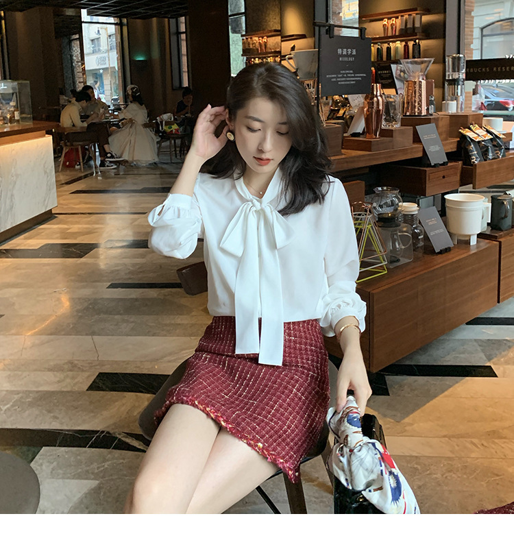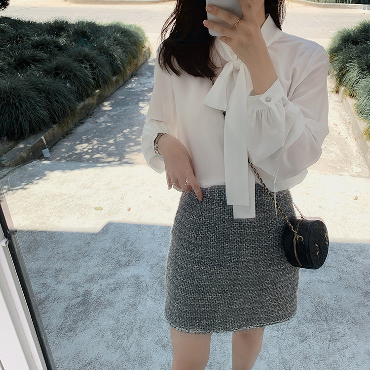 2023 새로운 여성의 부드러운 우아한 디자인 감각 느슨한 틈새 보우 화이트 랜턴 슬리브 여성용 느슨한 셔츠스토어 가기