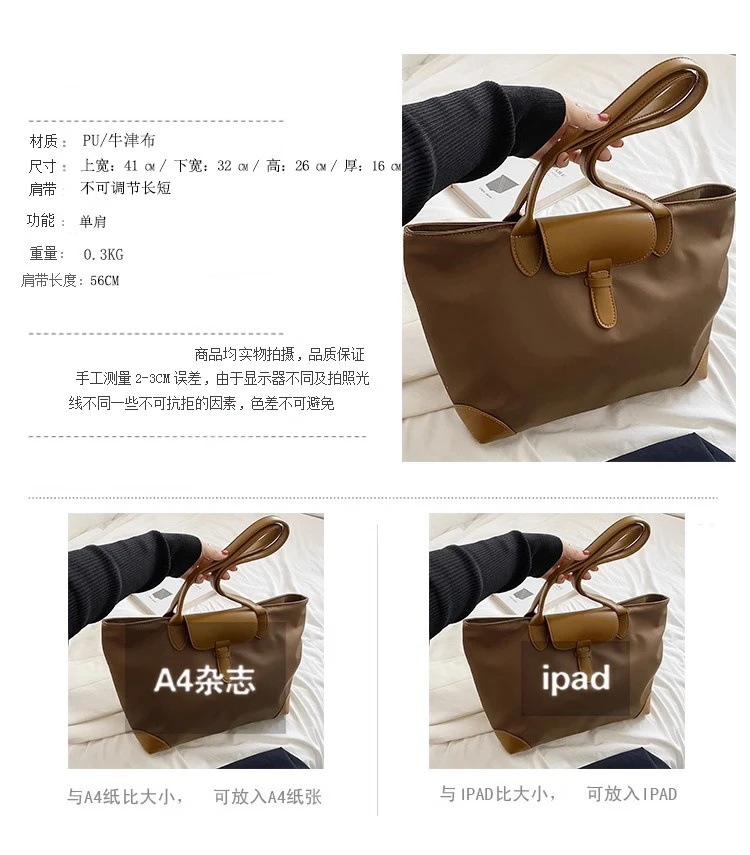 대용량 숄더백 여성 출퇴근용 큰 가방 학생 수업용 가방 나일론 천 다용도 토트백 필수 크로스백스토어 가기