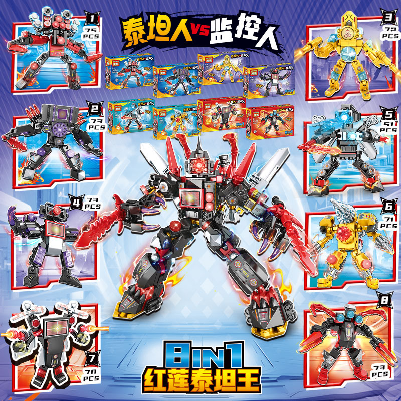 타이탄 TV 남자 장난감 화장실 남자와 모니터 남자 vs 타이탄 시계 남자 조립 건물 블록 모델 소년 선물