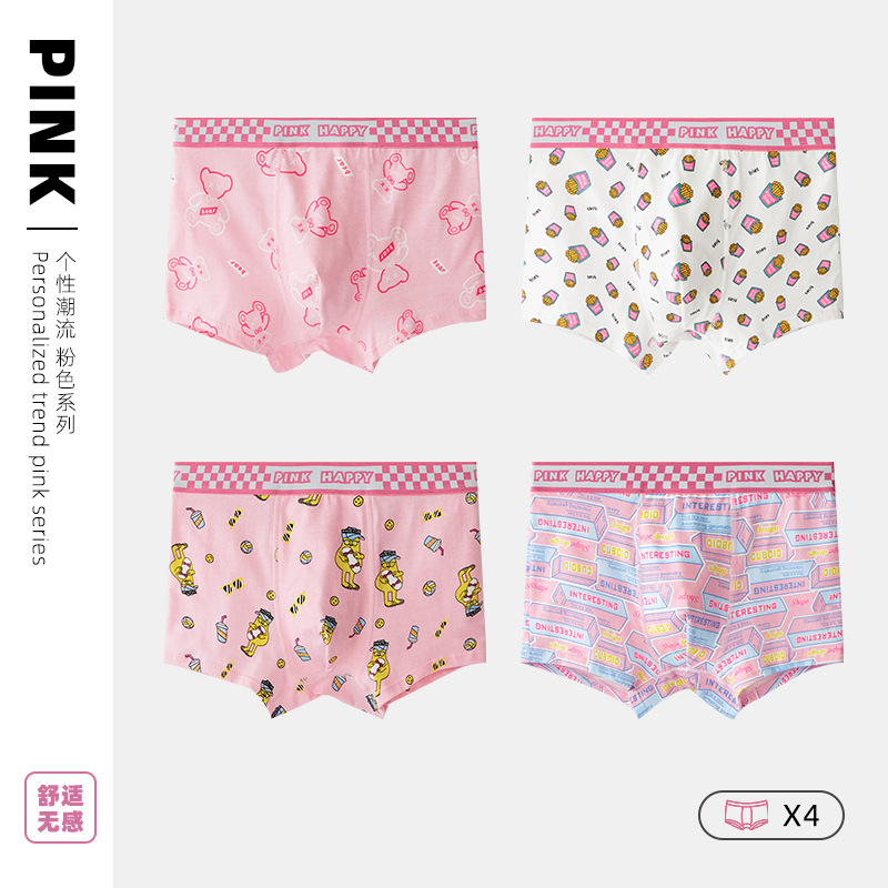 2023 새로운 유행 남자의 분말 정균 남자 속옷 순면 복서 유행 소년 복서 핑크