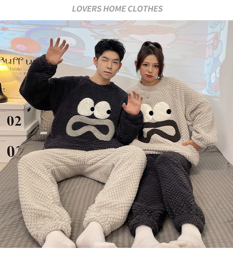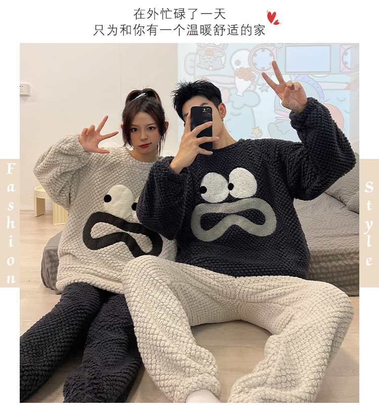 플란넬 잠옷 겨울 커플용 따뜻한 풀오버 여성용 코랄 벨벳 학생용 캐주얼 두꺼운 홈웨어 남성용 커플 스타일