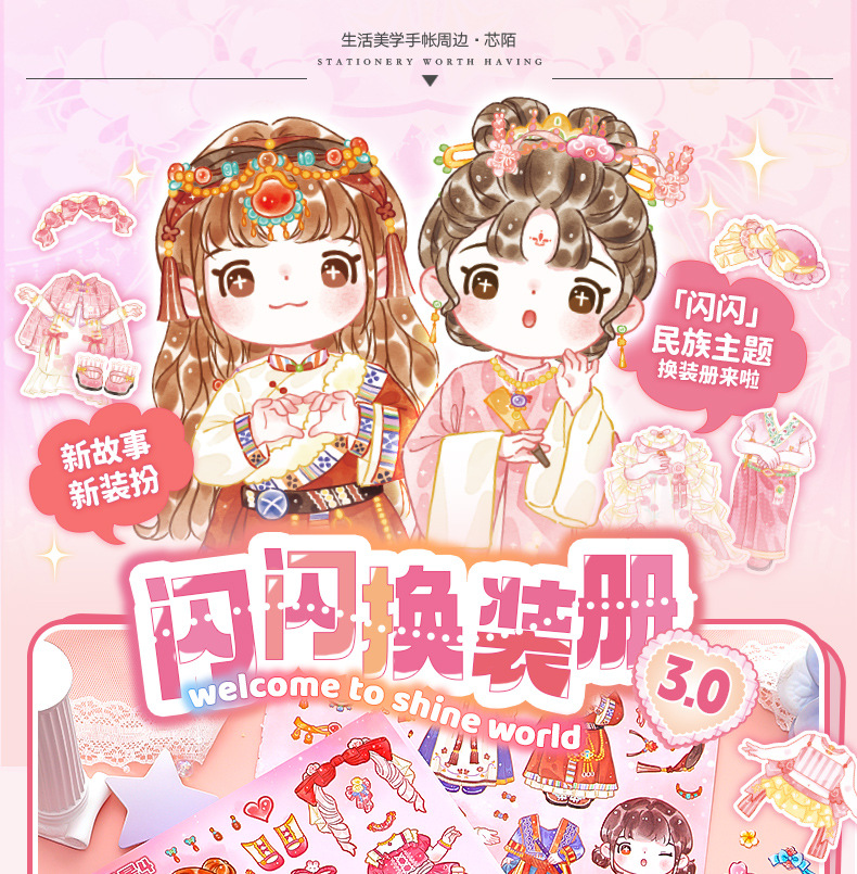 새로운 코어 낯선 사람 스파클링 원피스 업 스티커 귀여운 소녀 스티커 어린이 어린 소녀 그림 장난감 스티커스토어 가기