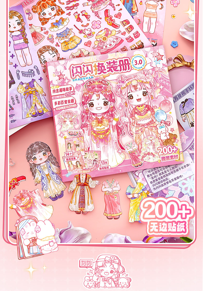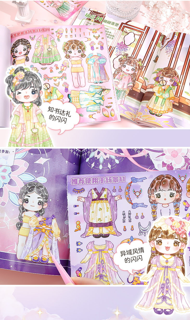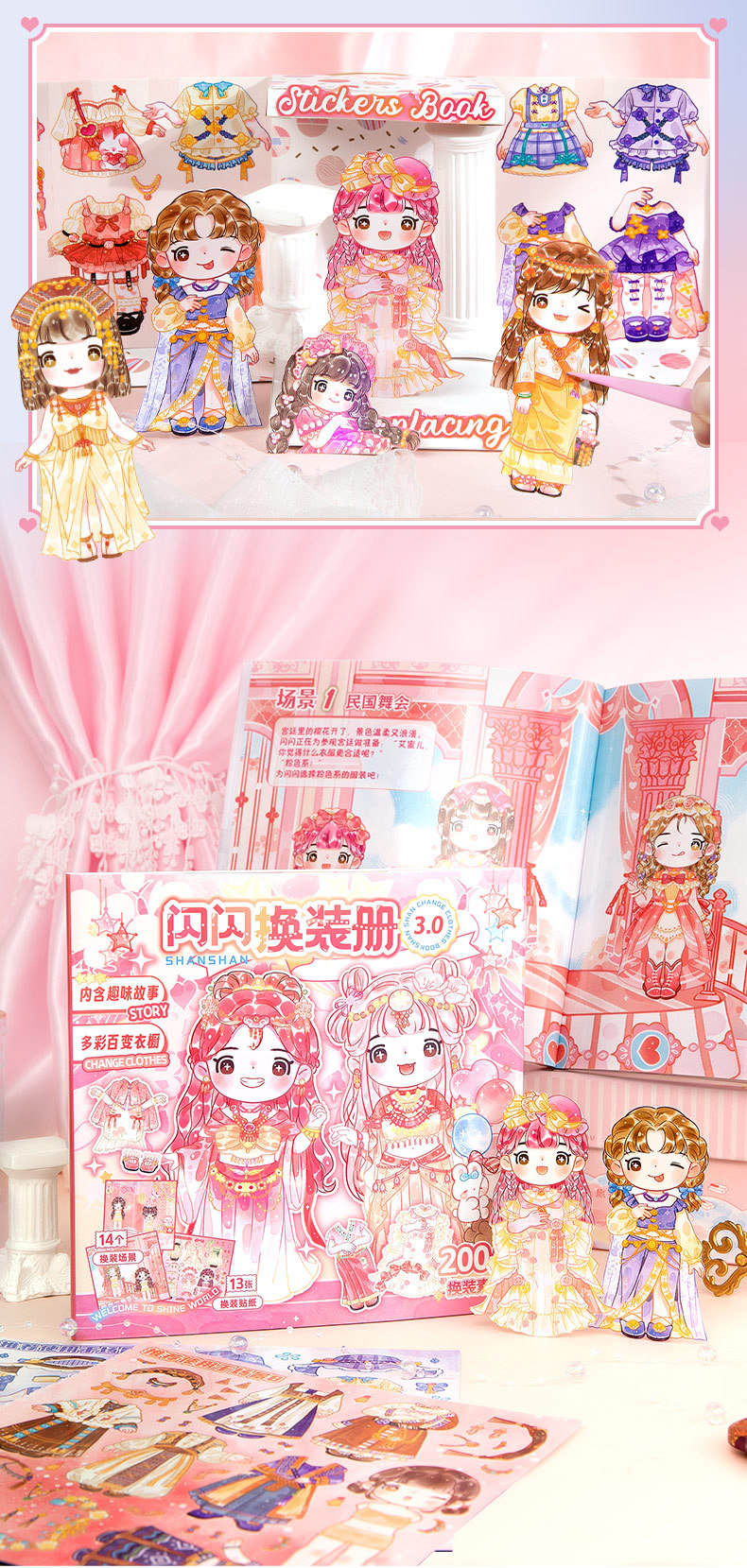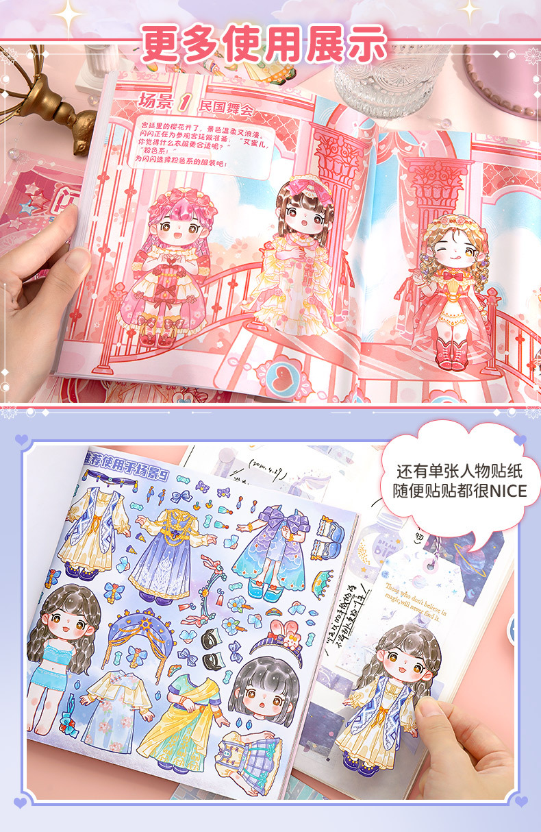새로운 코어 낯선 사람 스파클링 원피스 업 스티커 귀여운 소녀 스티커 어린이 어린 소녀 그림 장난감 스티커