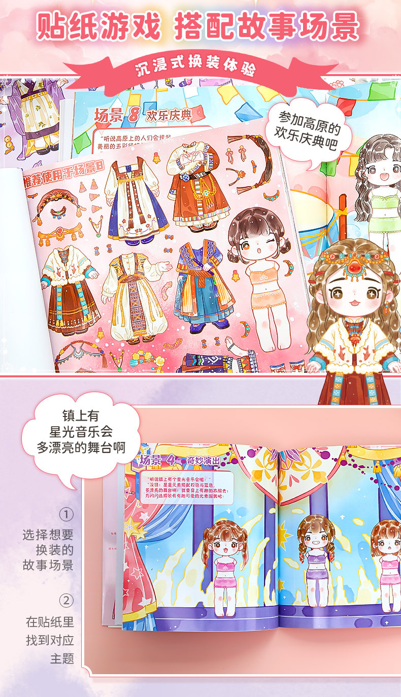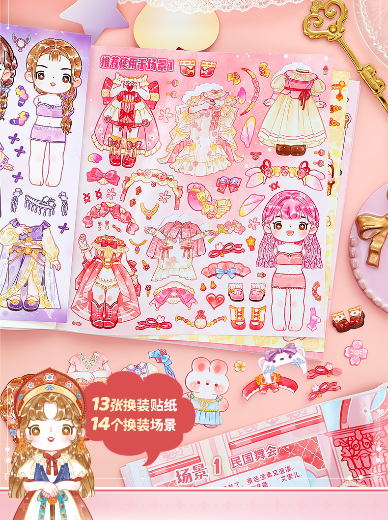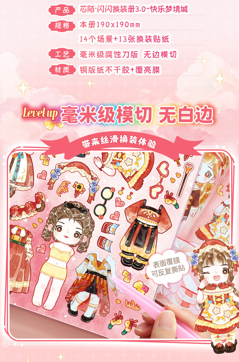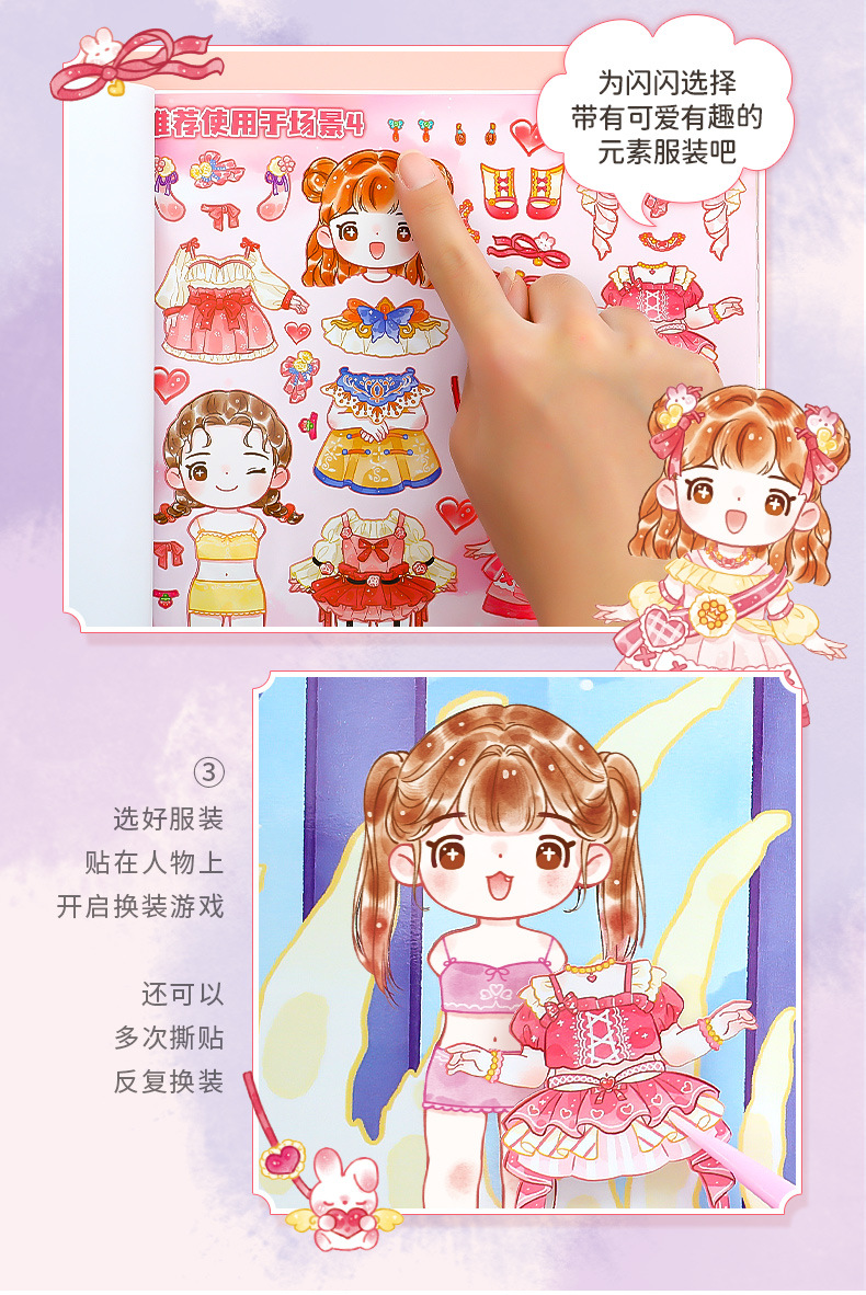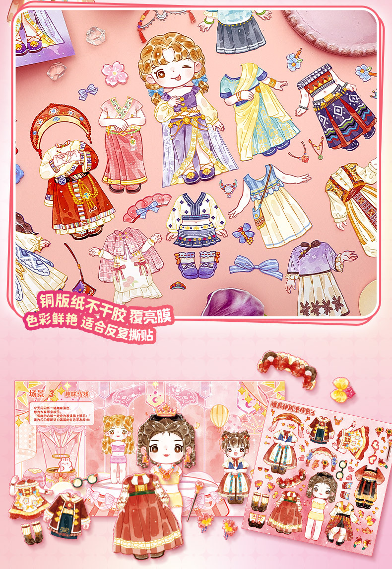 새로운 코어 낯선 사람 스파클링 원피스 업 스티커 귀여운 소녀 스티커 어린이 어린 소녀 그림 장난감 스티커