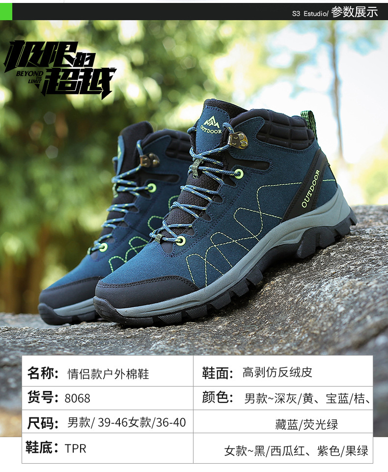 커플 하이탑 야외 등산 운동화 크로스보더 플러스 사이즈 면 패딩 작업 안전화 두꺼운 밑창 내마모성 보온 트렌디 신발스토어 가기