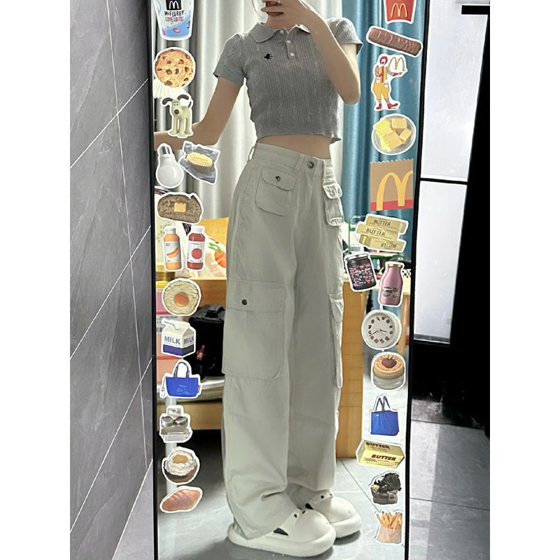 미국 레트로 화이트 스트레이트 청바지 여성의 2024 봄과 가을 높은 허리 슬리밍 하이 스트리트 툴링 바지 트렌디 브랜드스토어 가기