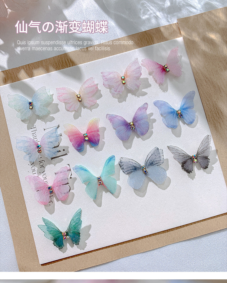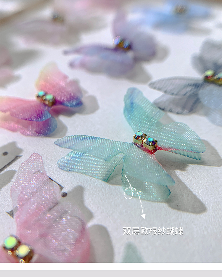 네일 아트 오간자 나비 보석 그물 빨간 발톱 드릴 새로운 활 직물 요정 그물 원사 네일 장식 배치