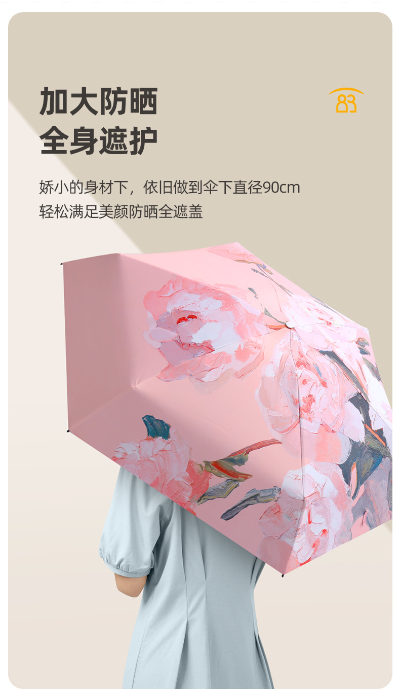 그림 손으로 그린 작고 편리한 60% 접이식 차양과 비 이중 목적 접이식 자외선 차단제 우산 미니 휴대용 단열 여성용 작은 우산스토어 가기
