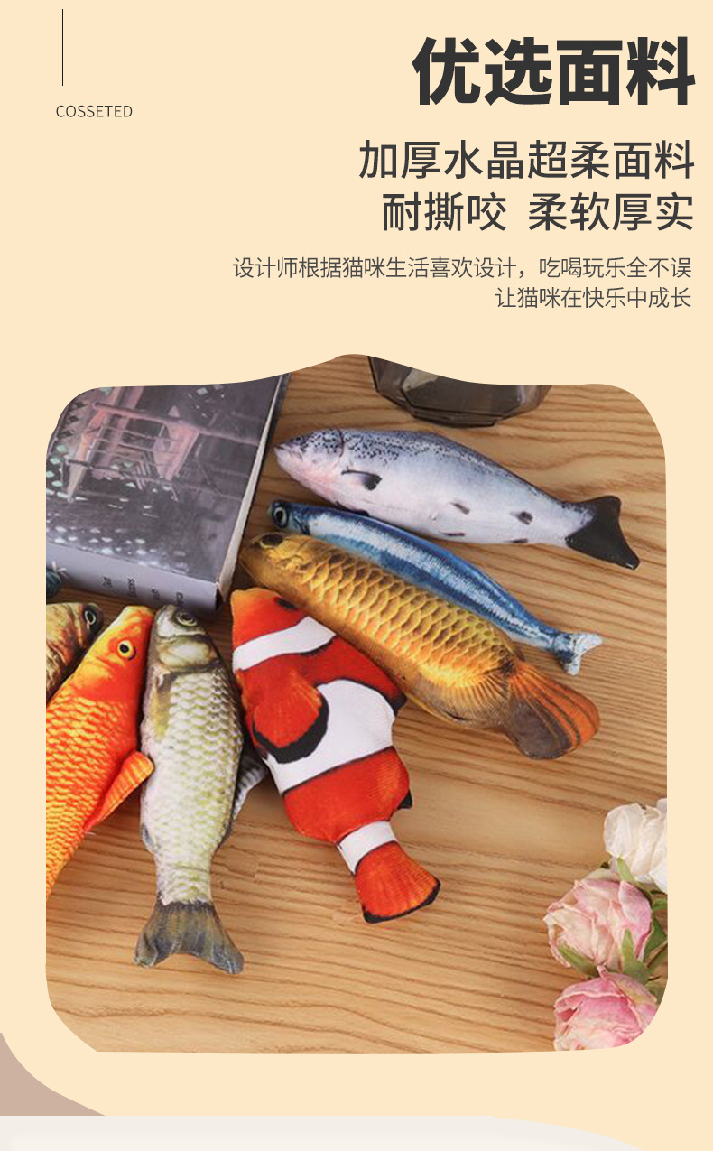 개박하 물고기 어금니 물린 봉제 장난감 고양이 애완 동물 용품 포함 국경 간 고양이 장난감 시뮬레이션 물고기 도매스토어 가기