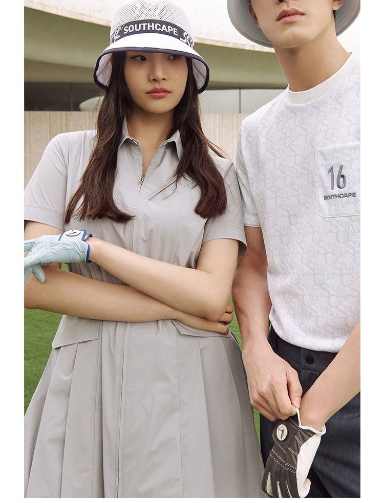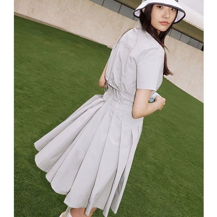 한국 수출 오리지널 골프웨어 여성용 카라 로고 허리 조임 반팔 원피스스토어 가기