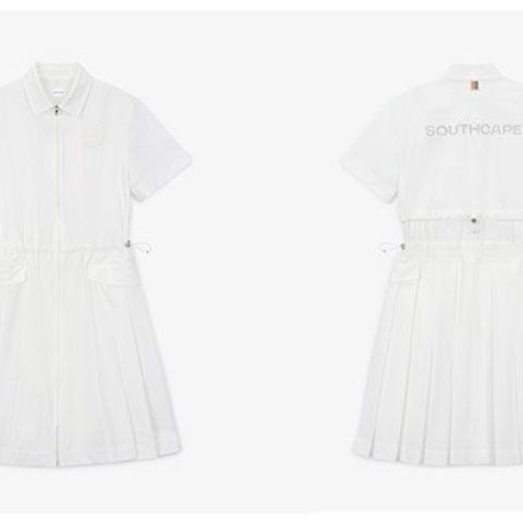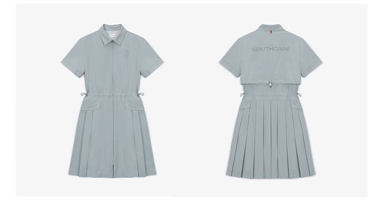 한국 수출 오리지널 골프웨어 여성용 카라 로고 허리 조임 반팔 원피스