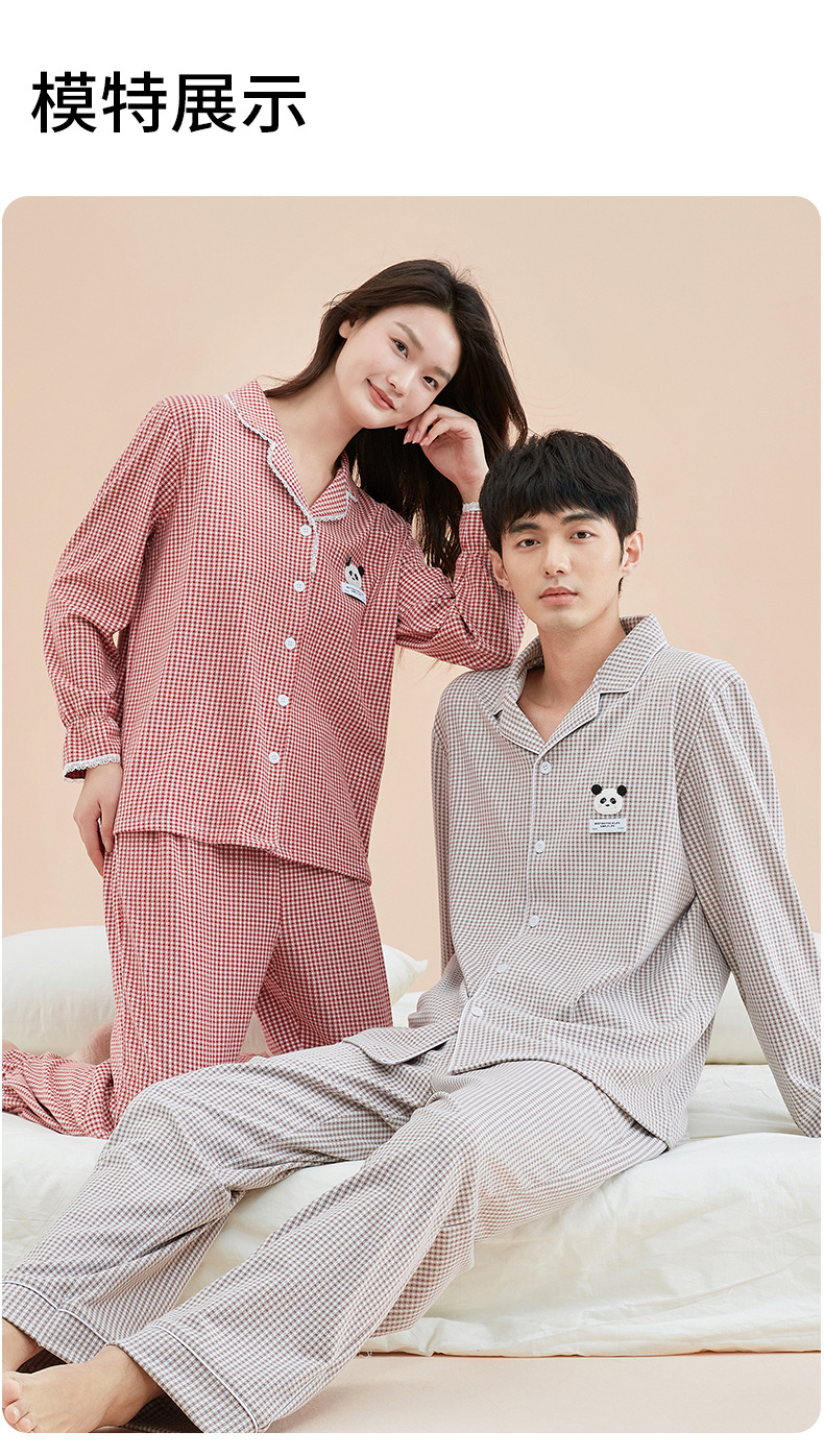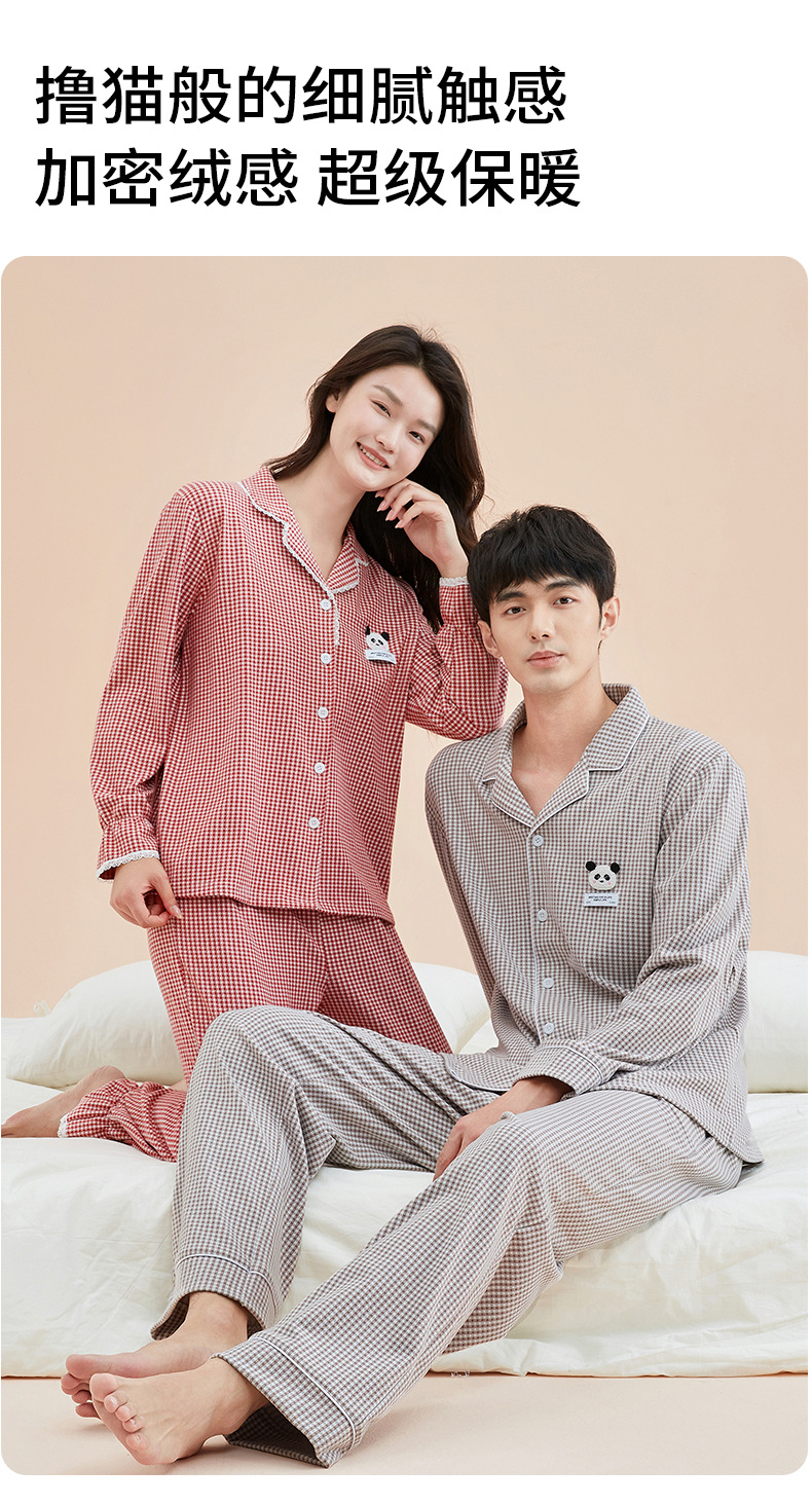 커플의 긴 소매 체크 패자마 가을과 겨울 새로운 여성 레이스 홈 옷 눈송이 벨벳 캐주얼 카디건 파자마스토어 가기